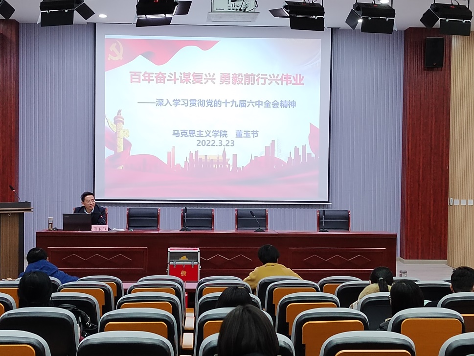 为全面深入学习领会党的十九届六中全会精神,准确把握丰富内涵和实践要求,切实引导公司党员干部把思想和行动统一到党的十九届六中全会精神上来,根据公司要求,3月23日下午,公司党委邀请安徽省委讲师团专家库成员、马克思主义公司经理董玉节教授作专题报告,公司全体教职工参加,会议由该公司党委书记尹必武主持。