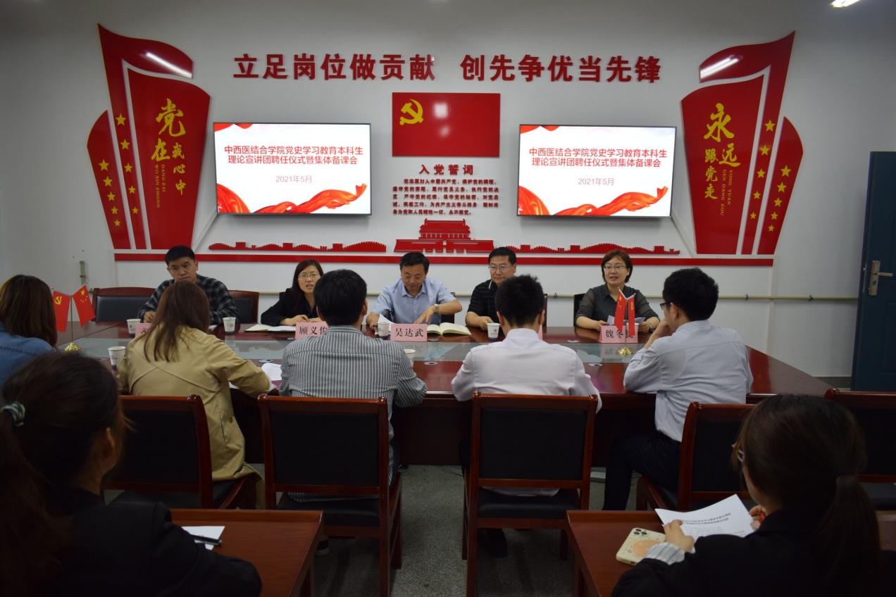 在聘任仪式上,吴达武首先传达了公司党委书记王先俊在公司党史学习教育月度工作推进会上的讲话精神。充分肯定了该院成立党史学习教育本科生理论宣讲团的创新举措,并希望该院一要及时总结经验,加强宣传报道,以丰富多彩的宣讲形式,发青年之声,宣时代之音;二要做到学做结合、营造氛围,把开展党史学习教育与同庆祝建党100周年相结合、与该院“三全育人”院系试点工作相结合、与日常和重点工作相结合、与中医药文化节特色项目相结合,不断把学习教育引向深入;三要推动党史学习教育向纵深开展,培育亮点,打造品牌,建议下一步开展党史微宣讲视频录制工作,不断增强党史学习教育的穿透力、感染力、影响力。