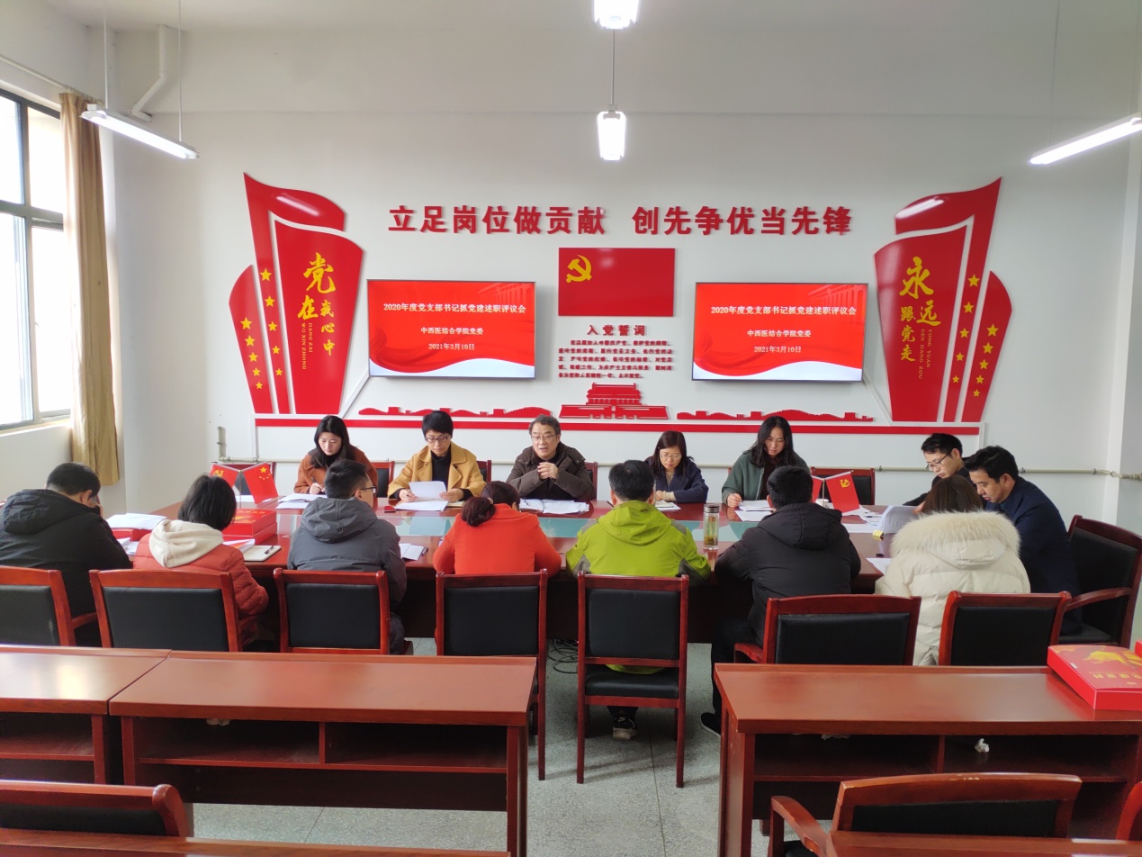 会议分三项议程。首先,各支部书记以口头汇报的形式,围绕支部标准化建设,针对本支部党建工作谈成绩、找差距、讲打算、说措施,逐一进行了述职,党委委员对述职情况进行了现场评议打分。牛忠军书记对党支部书记的述职逐一作了点评,并对做好2021年度支部工作提出要求。会后,党委委员对照考核表逐一核实党支部建设档案材料,进行评议打分,并按照排名公示考核结果。