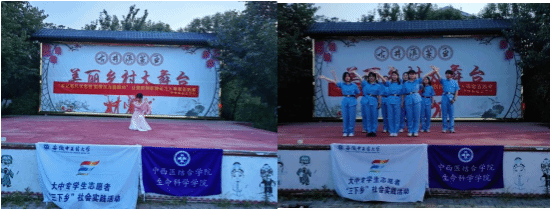 志愿队在药王村“美丽乡村大舞台”举办了一场别样的晚会,以艺术展演的方式让党的创新理论飞入寻常百姓家。演员们齐唱红歌、展示传统养生功法、跳中国舞、开展中医药文化知识互动问答,此次活动的开展不仅增强了群众对中医药文化的理解与认同和文化自信,为乡村振兴注入活力。
