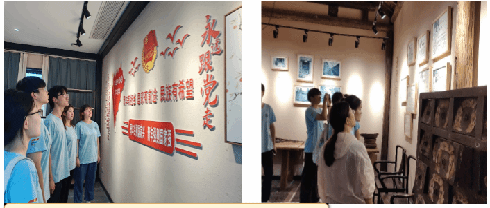 来到古井镇药王村,别具匠心的茶吧、民宿、图书馆、村史馆等映入眼帘,令人目不暇接,时尚元素与传统建筑相互映衬、融合完美,勾勒出一幅美丽的乡村旅游新画卷。走进村史馆,满目都是中药、方剂,古老中药架上斑驳的痕迹,都展示着药都的风采,村史馆的墙壁上记录着革命英烈的事迹,同学们驻足观看。