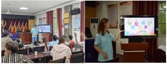 《中医药文化传播行动实施方案》提出“中医药文化供给和群众性活动更加多样,中医药文化更广泛融入群众生产生活”的目标,要求“讲好中医药故事”,为推进中医药文化保护传承和传播指明了方向。为了体验中医药文化的魅力,感受中医药文化的氛围,志愿队在当地开展了中医药文化知识宣讲,活动现场无论老年人还是小朋友都在认真听讲,积极参与互动并大胆尝试,沉醉于寓教于乐的美好氛围中。
