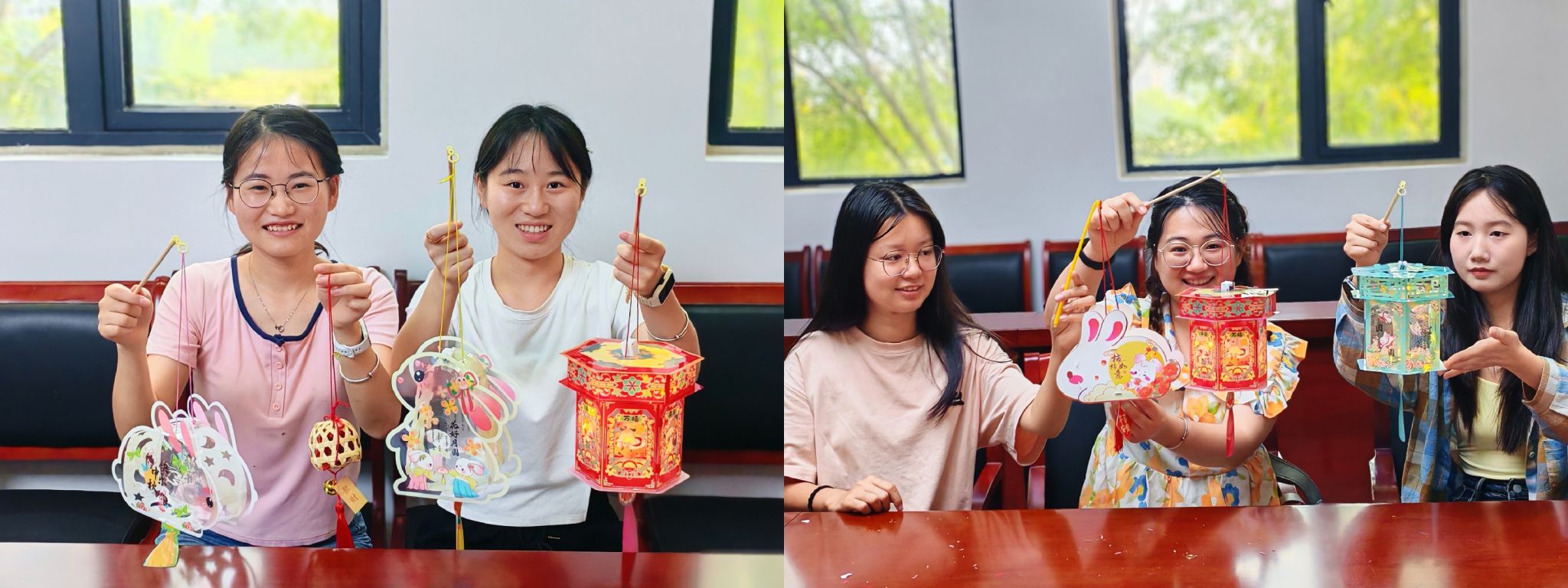 接下来,活动进入了DIY环节。支部准备了花灯和香囊材料,参加活动的同学们领取材料,根据相关步骤,结合个人创意,做出了属于自己的中秋作品。活动现场,同学们共同学习,互帮互助,气氛其乐融融。香囊寓意着平安、幸福,而灯笼则象征着光明与希望,大家在制作过程中不仅感受到传统文化的魅力,更加深了彼此的友谊。