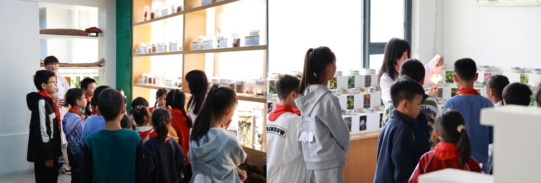 活动第二站是中药资源中心,该中心被国家中药资源中心列为安徽分中心,被合肥市政府授予“科普教育基地”。在这里,志愿者带领小朋友们依次讲解参观了中药材性状辨识馆、安徽道地药材研展馆、本草研展馆、中药材研展馆、腊叶标本研藏室和中药调剂研展室等六个展室。通过互动环节,孩子们不仅学习了中药的基础知识,还亲自参与了简单的中药材辨识游戏,感受到了中药文化的魅力。
