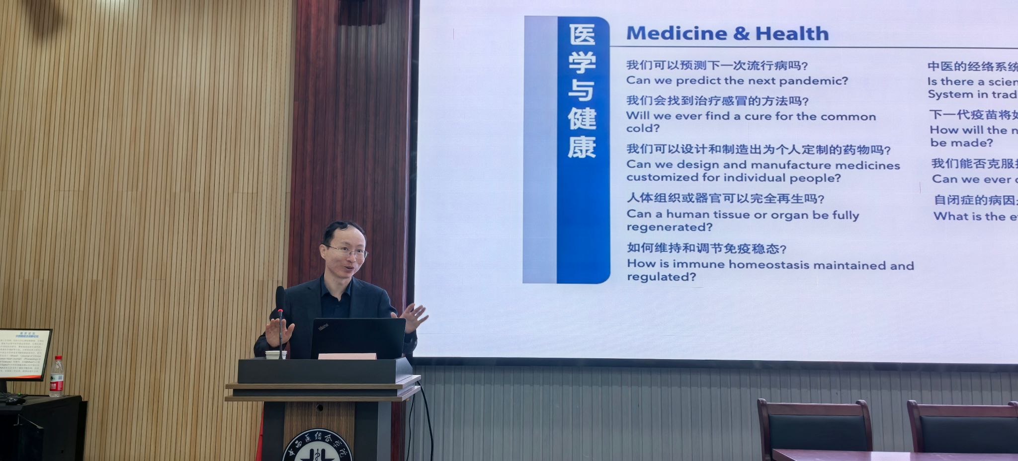 项耀祖围绕“中西医结合科学问题与路径思考”开展专题讲座,并结合自身研究方向,深入解析了中医“血瘀证”的生物学基础、针灸机制的现代神经生物学阐释,以及中药复方在心血管疾病治疗中的免疫代谢调控机制。他特别分享了其在国家自然科学基金资助下,围绕“症候客观化”“方剂配伍机制”等关键问题所取得的研究进展,包括血小板动态变化与中医证候的关联、中药“引火归元”策略在抗炎中的应用,以及基于AI和数学原理解析中药多成分协同作用的新方法。