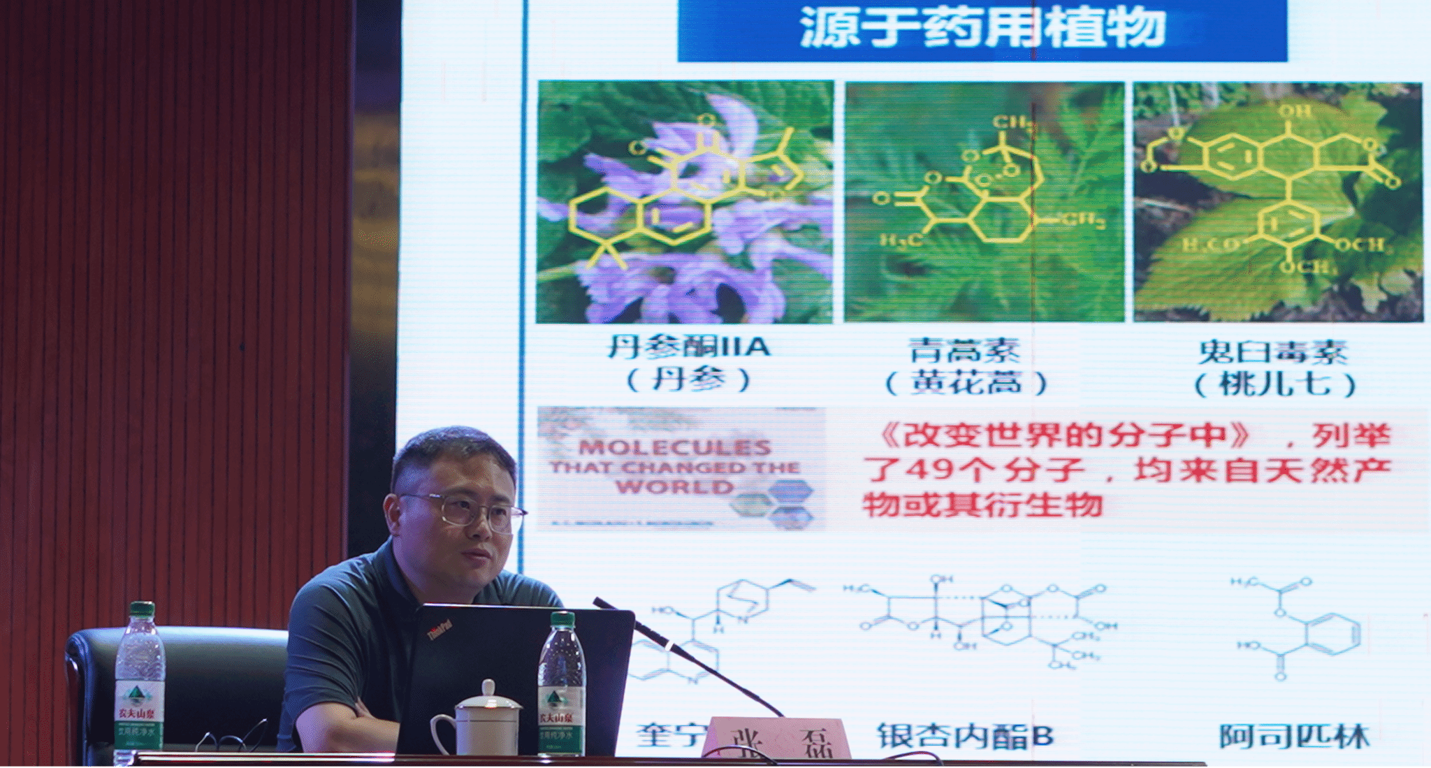 报告会第一阶段,张磊教授以药用植物是实施健康中国和共同富裕国家战略的特色优势资源为导向,引出了创制优异种质科学问题,提出了高品质植物种质和高产量微生物种质是解决中药优异种质资源的关键路径。随后,张磊教授以研究团队“解析板蓝根木脂素苷立体选择性合成机制”、“解析丹参酚酸/丹参酮时-空特异性合成和调控网络的演化新机制”、“解析青蒿素合成和腺毛发育的协同调控新机制”为例,介绍了“生物技术+信息技术+人工智能”的从头合成育种新技术,系统诠释了如何发展新质生产力,推动我国中药资源保障与药材品质提升。