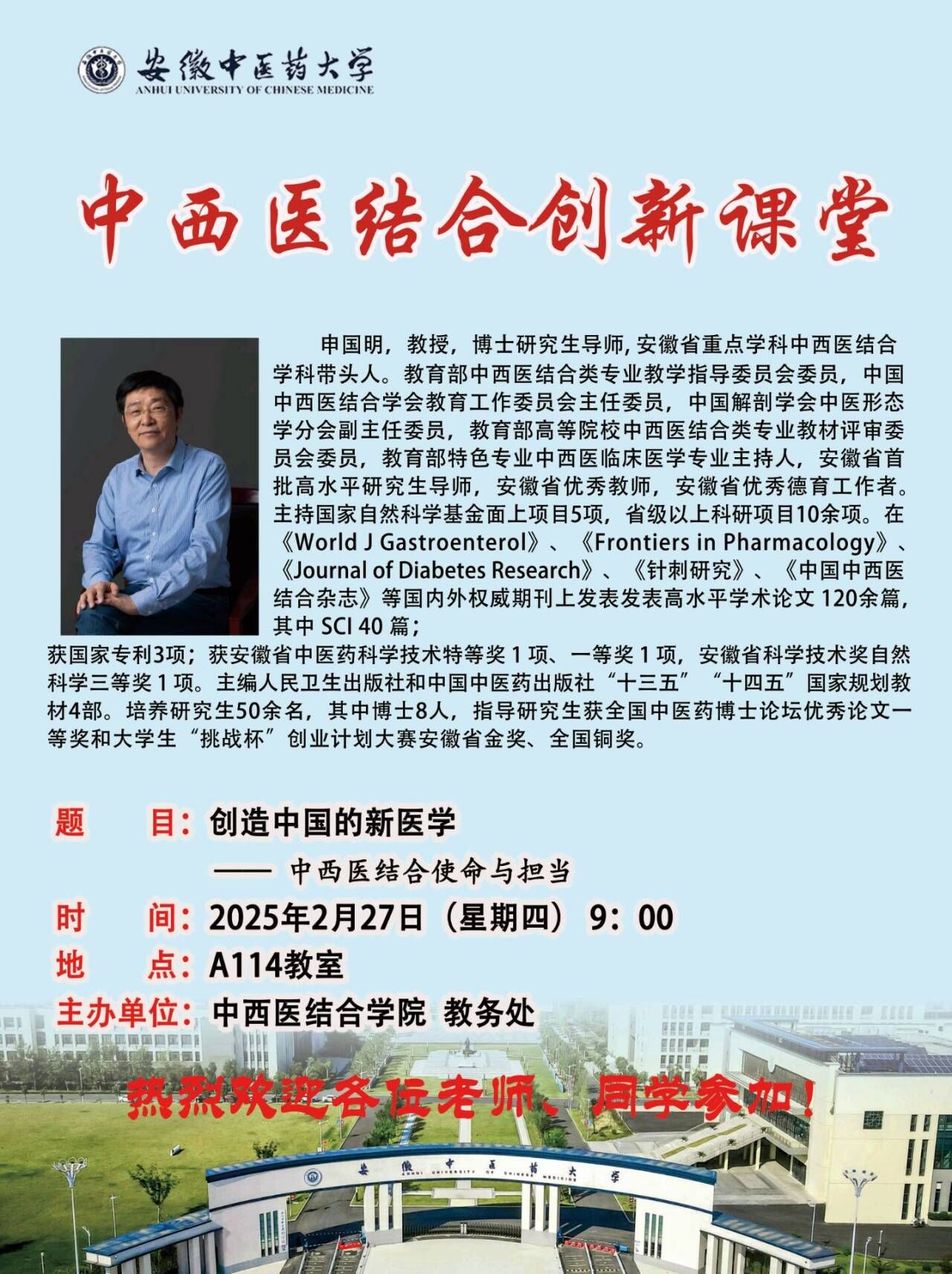 中西医结合创新课堂:创造中国的新医学——中西医结合使命与担当
