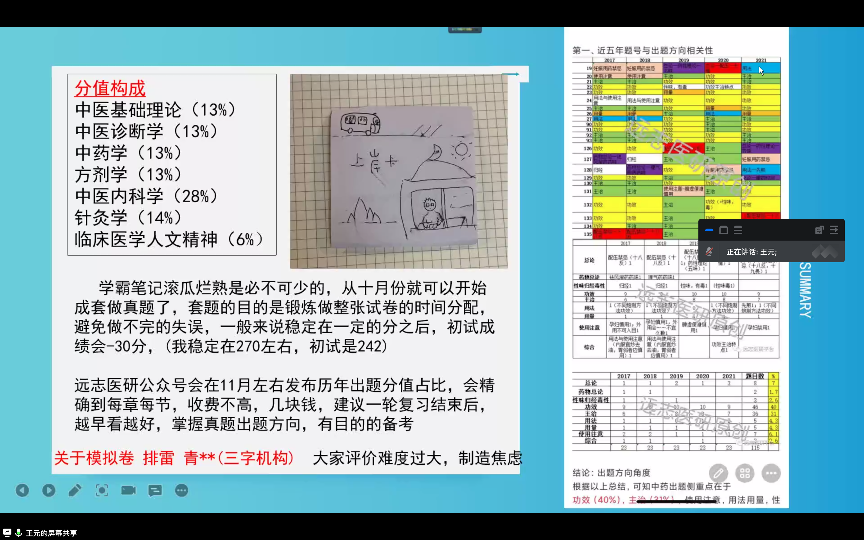 王越从学习方法和报考技巧两个方面出发,提供了每个科目的学习建议,并强调要根据后期复习状态,先确定公司,再确定专业。提醒同学们要按照自己的节奏复习,提高学习的实效,稳中求进。