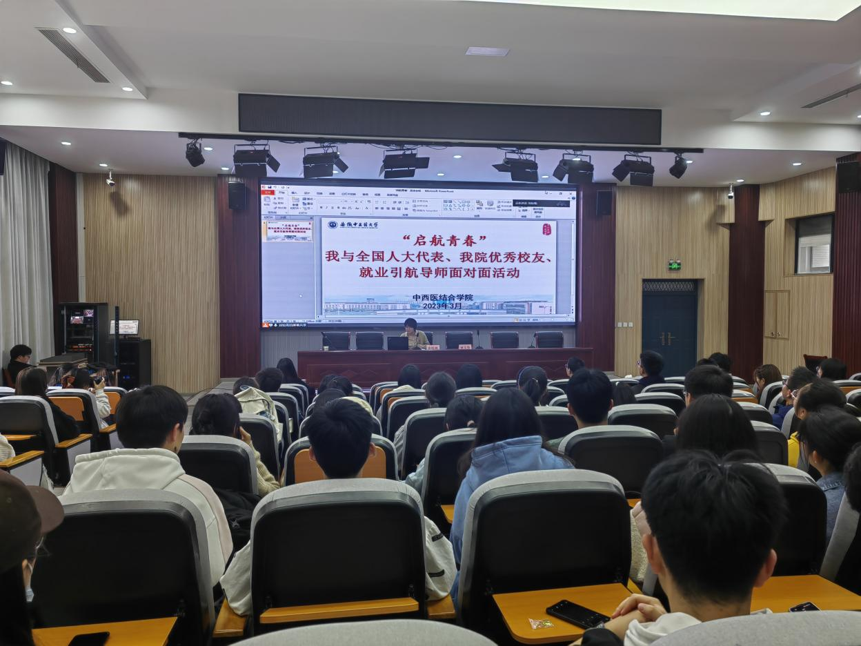 活动以“启航青春”为主题,围绕全国两会精神和中医药振兴发展重大工程实施方案,为同学们解读了中西医专业发展方向和就业趋势。会上她结合自己2019年7月到2021年7月两年“百医驻村”行动的经历与同学们谈了专业学习和职业发展的问题,鼓励同学们要有广阔的视野,勇于探索,不断提升自己的专业水平。