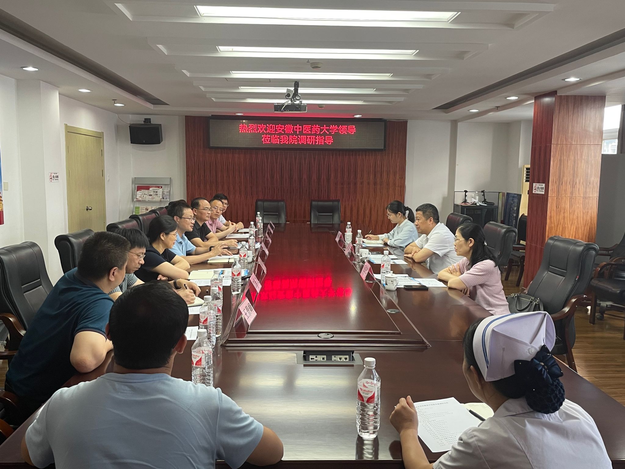在歙县中医院,田磊简要介绍了公司近年来在公司产品、中医药传承创新、毕业生就业等方面的情况,他表示,随着“双一流”建设,公司发展驶入快车道,歙县是新安医学的重要发祥地,歙县中医院有良好的区位优势,希望校院双方在新安医学研究、人才培养等多方面深化合作,全力促进中医药事业振兴发展。歙县人民政府副县长(挂职)尹刚、医公司党委书记梅一强、经理胡萍、纪检书记邱生坤、副经理江乐义、王景峰和相关科室负责人参加了座谈,就医院基本情况、中医药特色优势、人才需求等做了介绍,表示将积极推进校院联动,吸引更多中医药专业毕业生到歙县就业,在歙县找到事业的发展点。