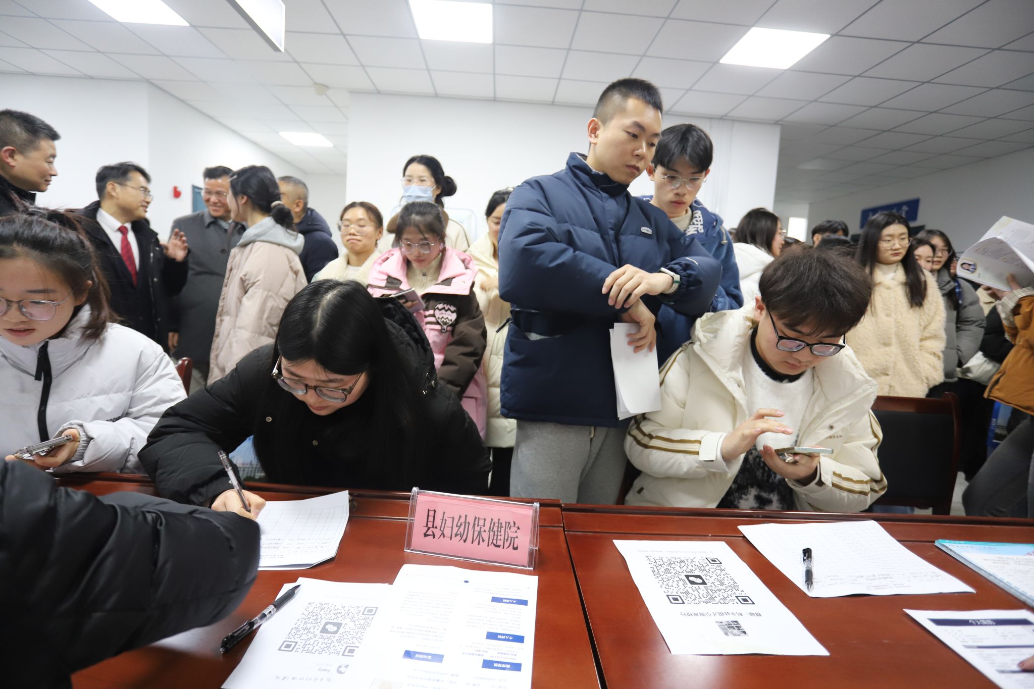 会上,与会人员共同观看了利辛县宣传片,利辛县人民医院等五家用人单位还在现场进行了推介演说,分别简要介绍了单位情况及招聘需求,并在现场设立招聘咨询点位,开展招聘活动。据了解,此次活动期间共计202名毕业生进行现场登记,其中硕士研究生34人,本科生168人。会后,参会领导视察指导了招聘会现场,参观了公司新安医学馆。