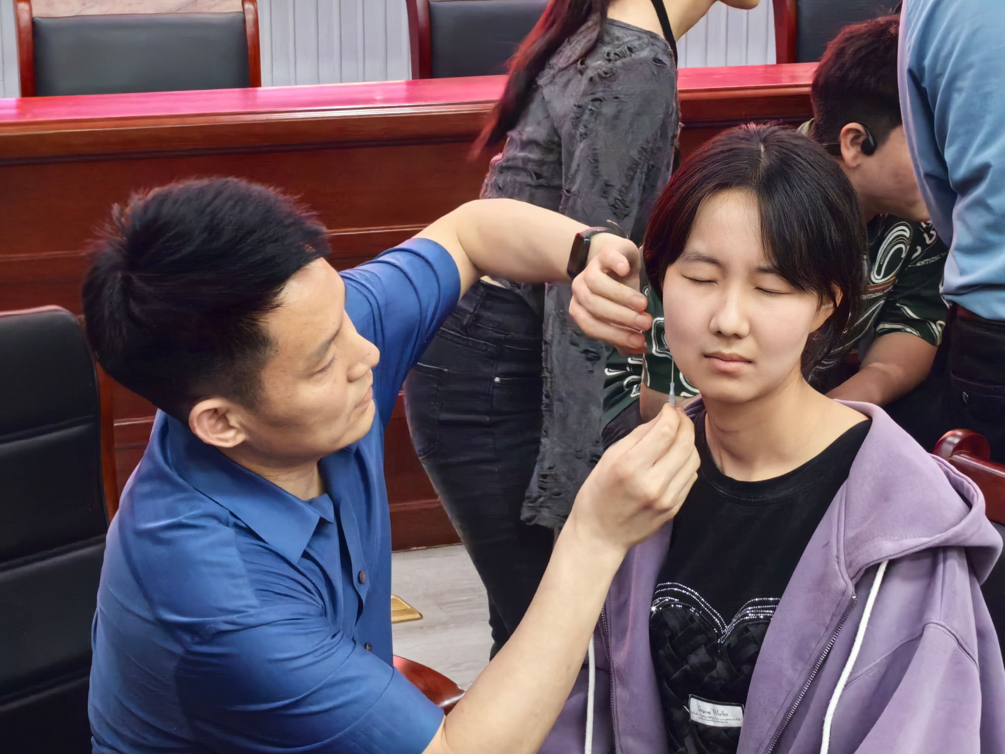 2022级中西医临床医学2班员工王慧雯在活动后表示:“通过学长的讲解,我第一次系统了解到浮针疗法的发展历程和科学原理,特别是看到治疗前后的对比视频,让我对中西医结合治疗有了全新的认识。”2024级中西医临床医学4班员工方国庆分享道:“有幸参与现场治疗体验,学长精准的进针手法和即时的治疗效果令人叹服,这种理论与实践相结合的教学方式让我们受益匪浅。”