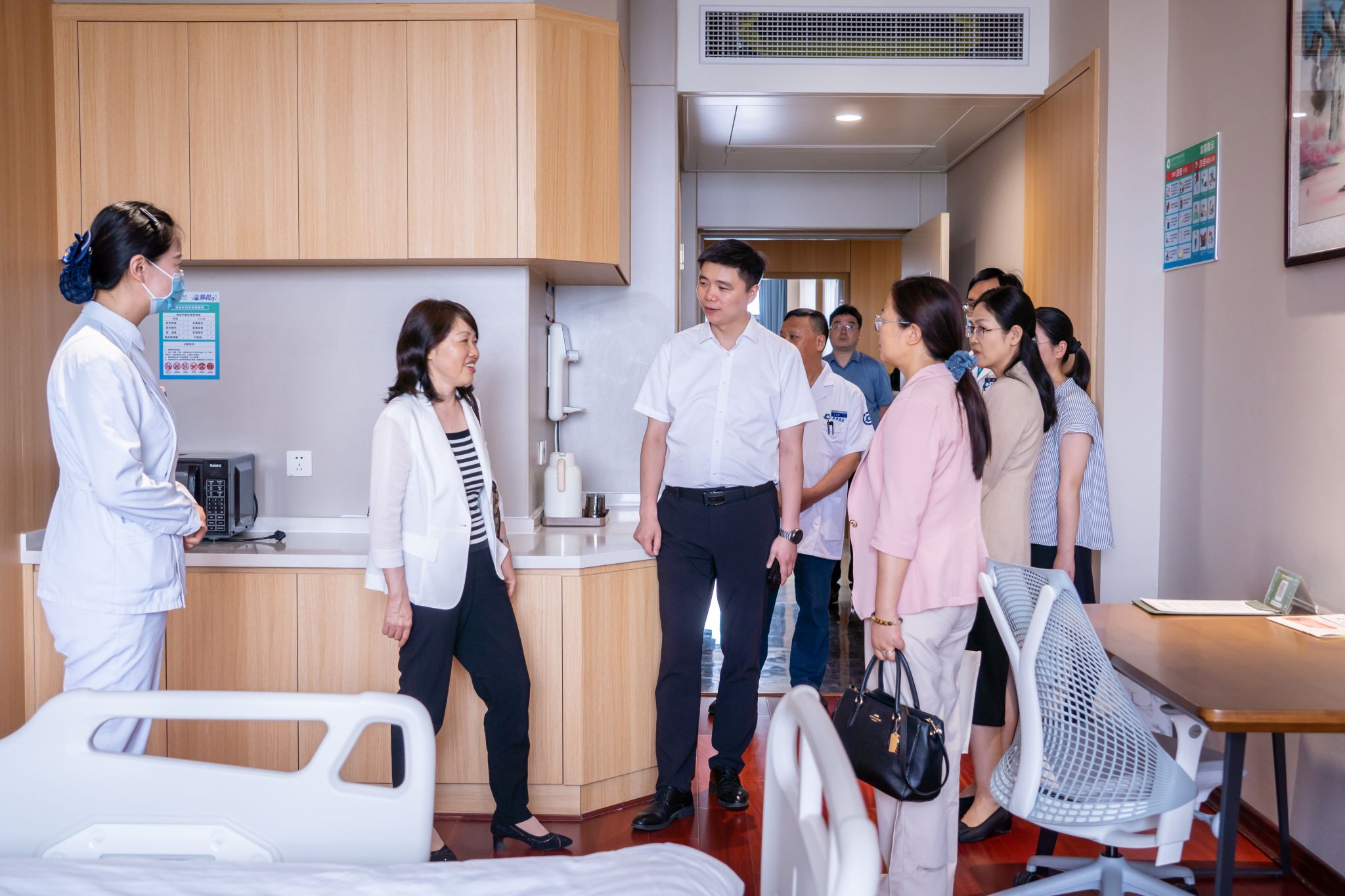 在医院领导的带领下,桂双英一行实地参观了医院的肿瘤筛查中心、贵宾医疗中心、中医综合治疗区以及重点科室病区等地,深入了解医院的科室建设、医疗设备配置、诊疗服务流程、人才培养体系等情况,全方位感受医院的运营和发展现状。