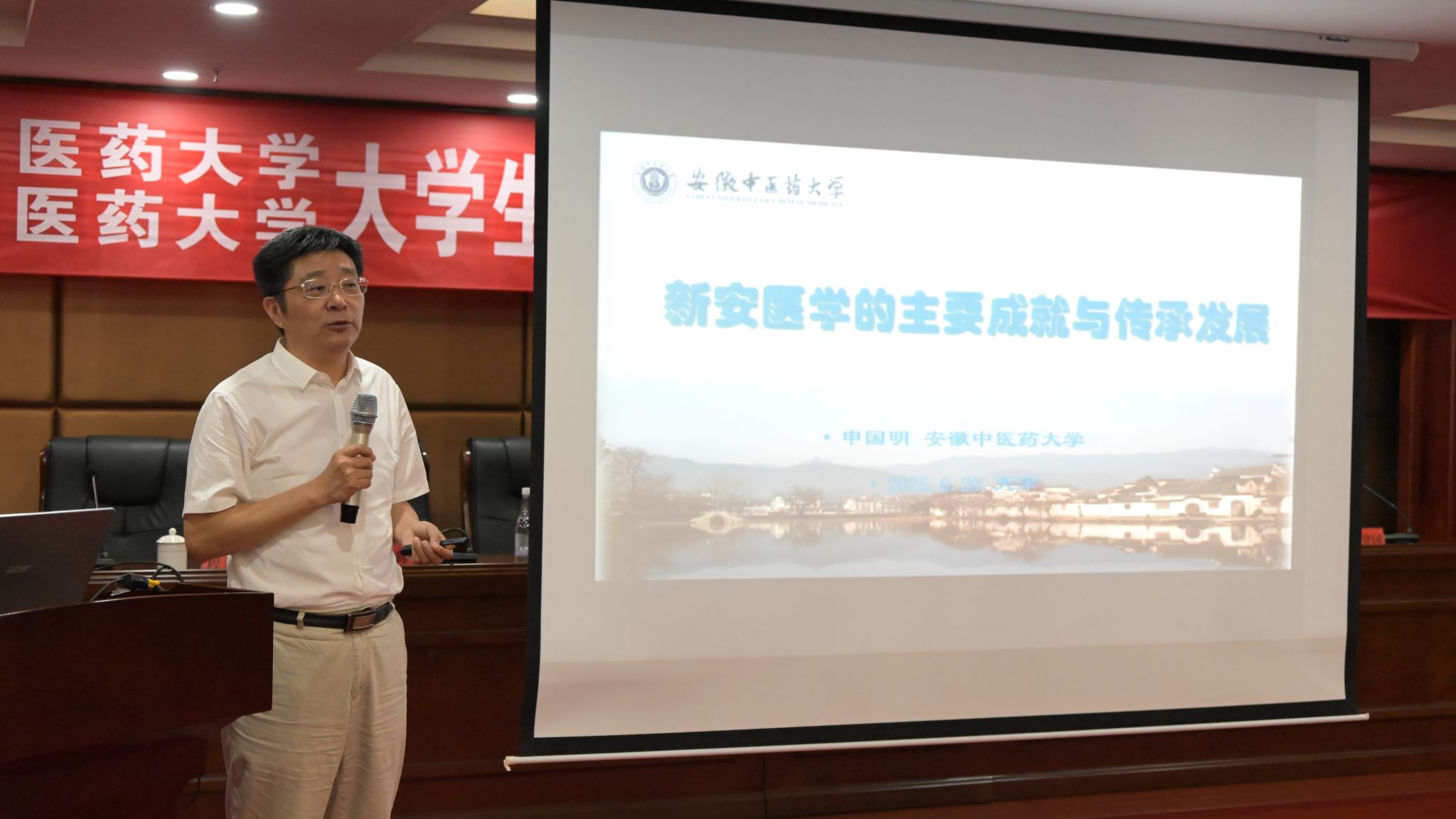 启动仪式结束后,公司申国明教授作了题为《新安医学的主要成就与传承发展》专题讲座。他深度剖析新安医学在理论、临床、学术传承等方面的成就,为师生深入理解中医药脉络传承筑牢根基。