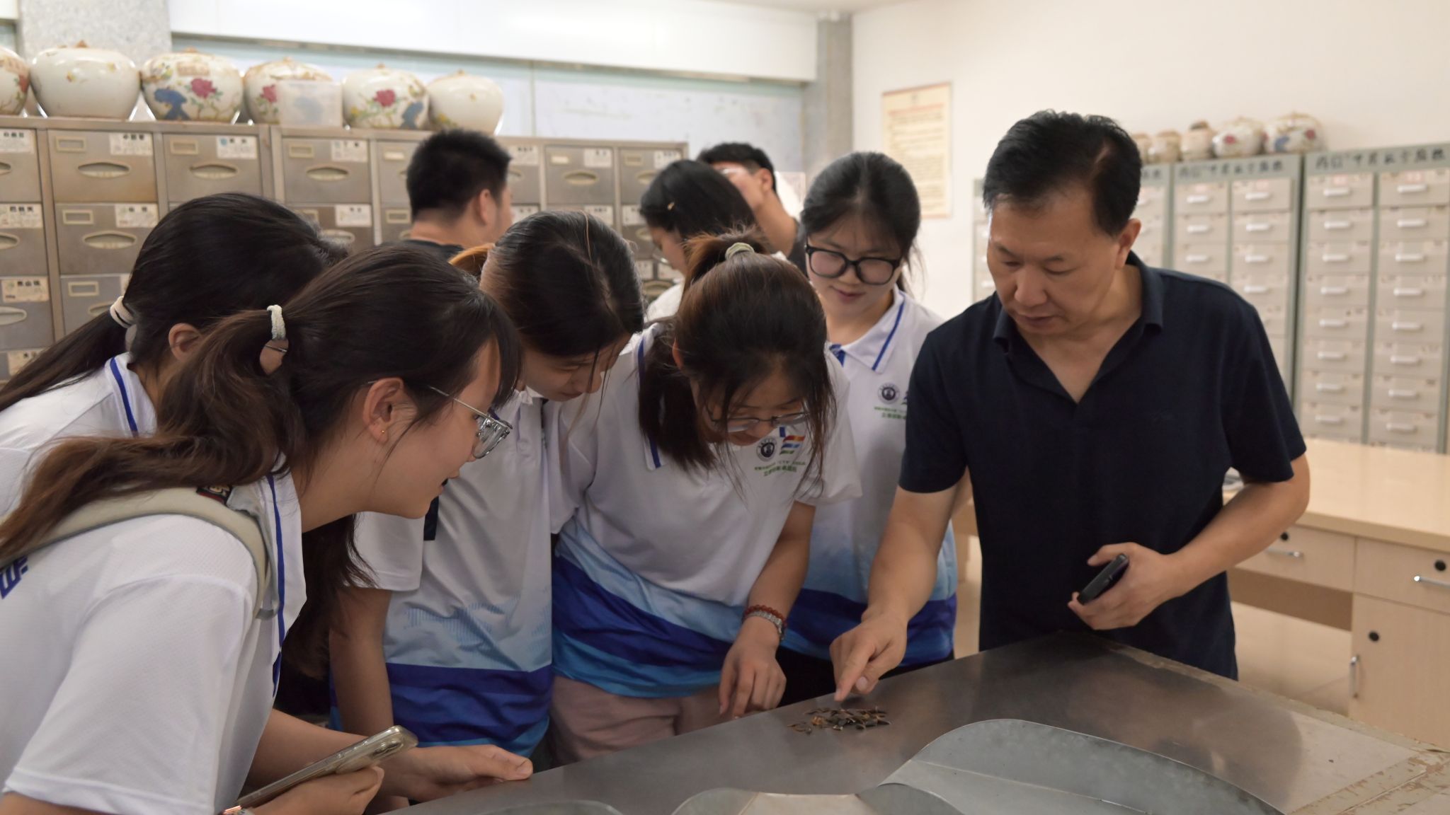 两校师生还参观了休宁县中医院百草园,体验香囊制作,参观膏药加工、中药煎煮等中医药文化体验活动。