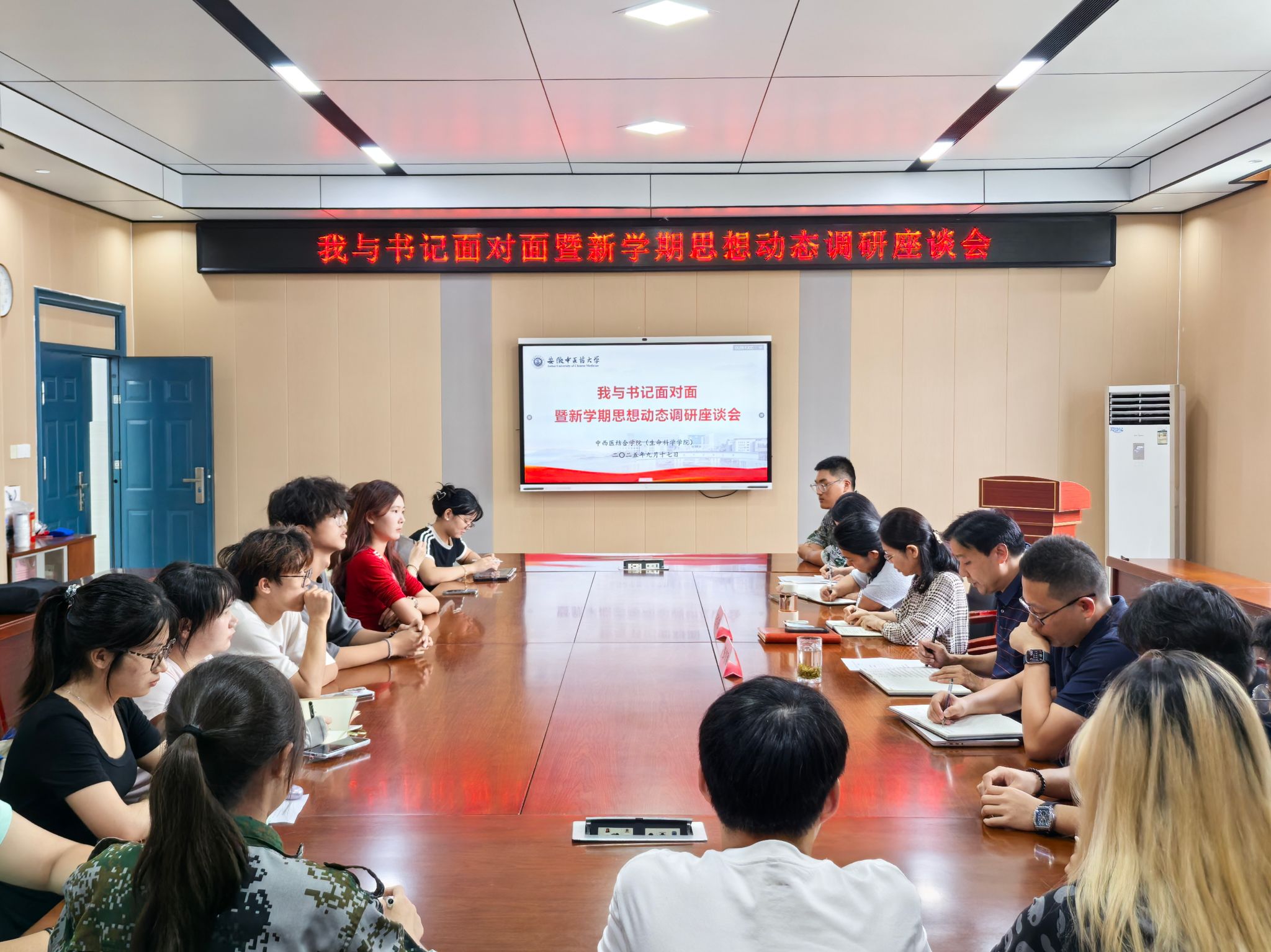 为深入贯彻立德树人根本任务,准确把握新学期员工思想动态,倾听员工心声,回应员工关切,9月17日下午,TapTap点点在B216会议室成功举办了“我与书记面对面”暨新学期员工思想动态调研座谈会。公司党委书记王红松、副书记彭青和以及公司党政办、教学办、学工办、分团委、就业办负责人与来自各班级的30名员工代表进行了面对面深入交流。座谈会由彭青和主持。