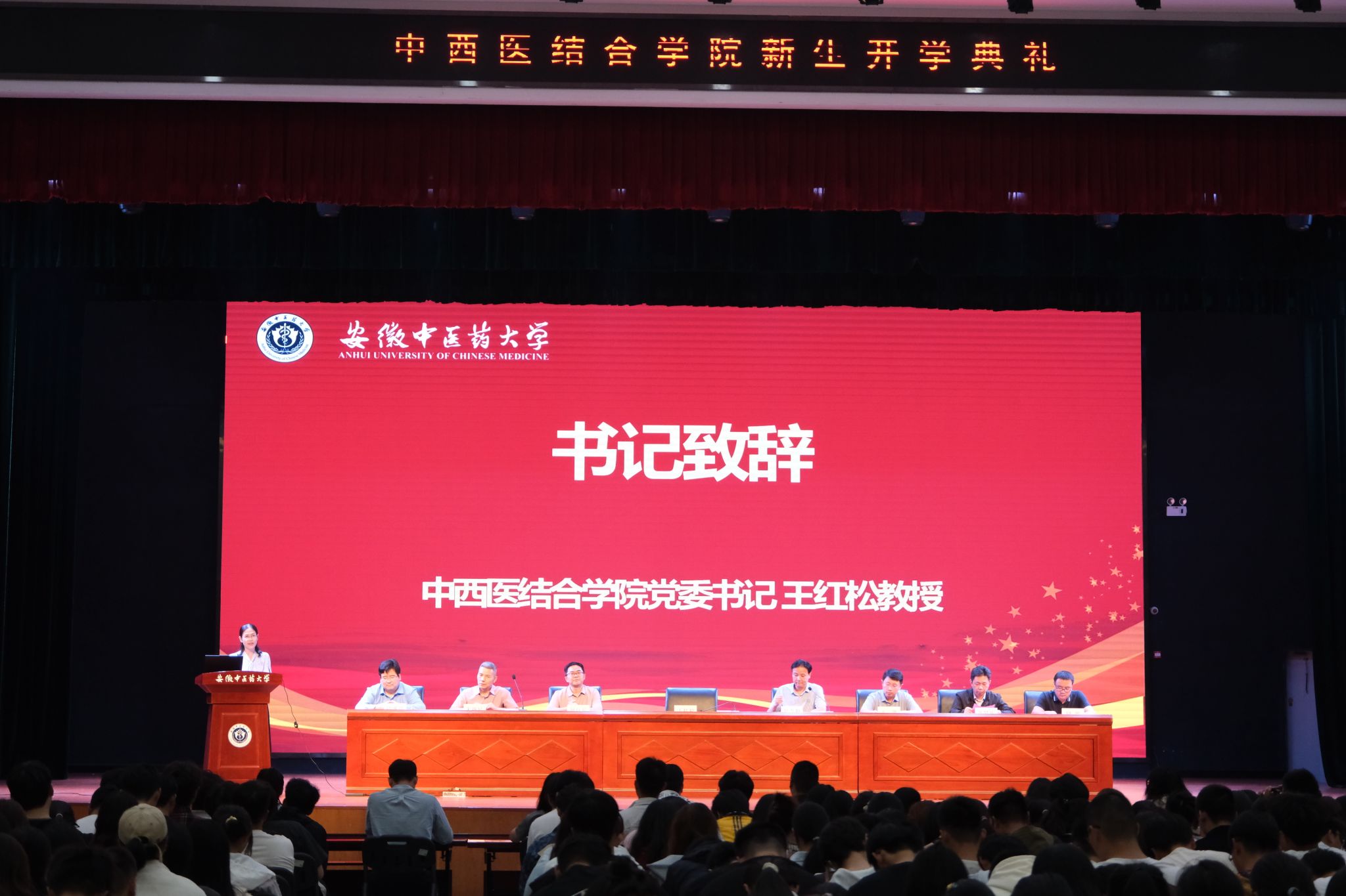 典礼上,朱继民教授作为教师代表发言,他鼓励新生们以“德”为先,修身为本;以“勤”为径,脚踏实地;以“悟”为要,守正创新;以“恒”为志,坚韧不拔,努力成为中西医结合领域的优秀人才。2024级中西医博士研究生卜庆如和2025级中西医临床医学7班张理想分别作为在校生和新生代表发言。典礼上,全体新生进行了《医员工誓言》的宣誓,表达了他们将恪守医德、勤奋学习、服务社会的决心。典礼在校歌——《青春在飞扬》的悠扬歌声中落下帷幕。