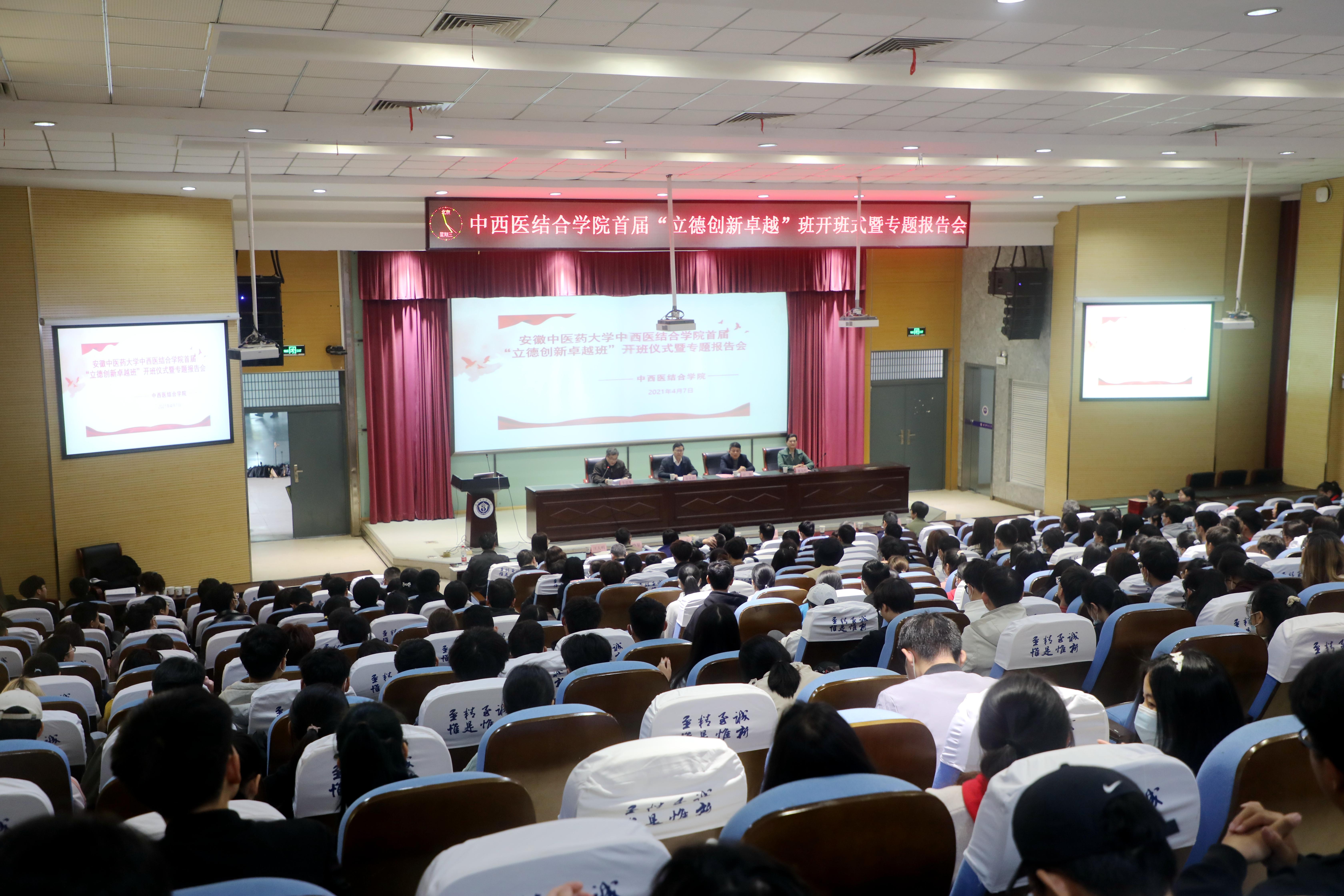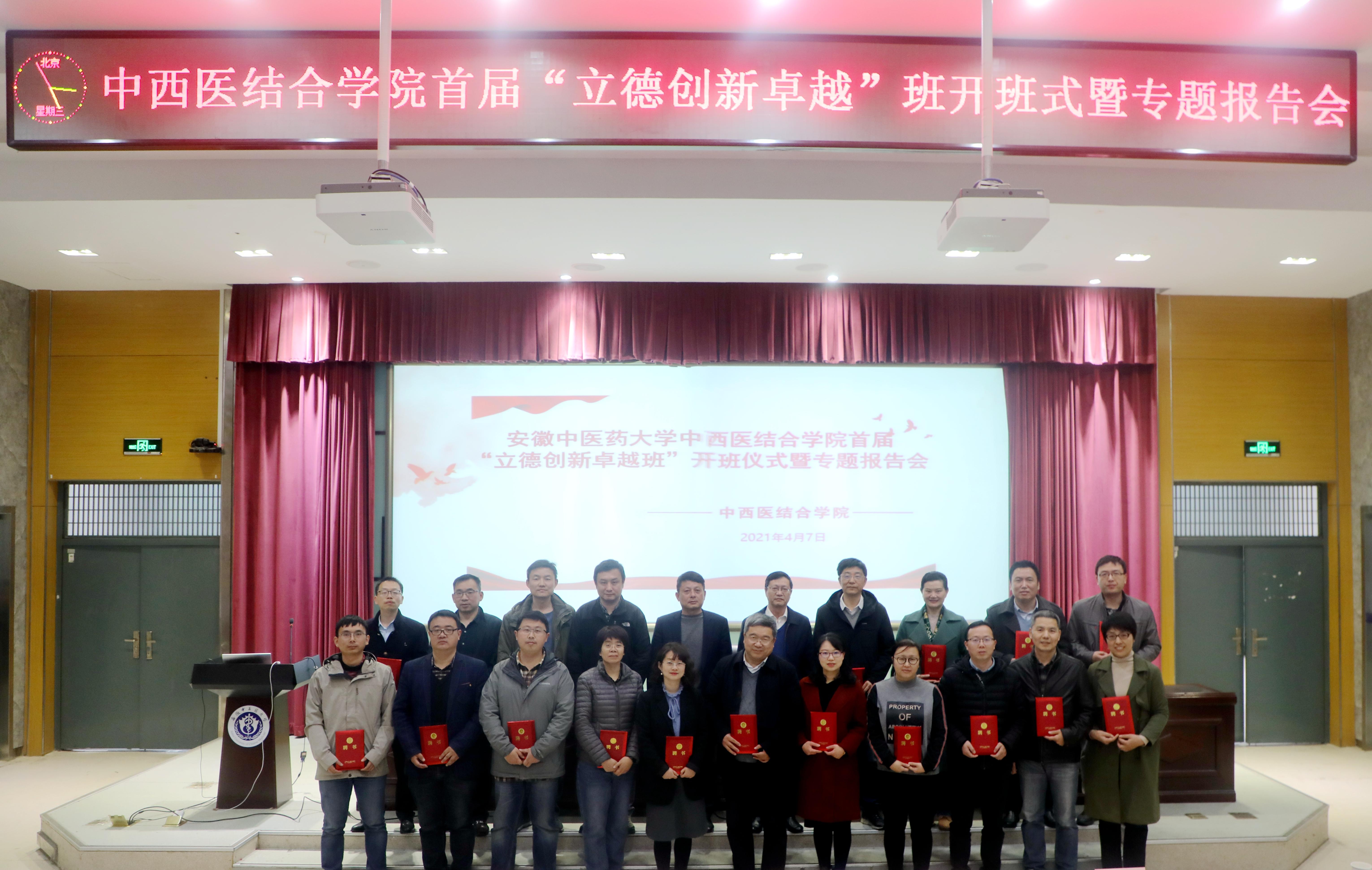 许钒结合当前中医药发展政策,对“立德创新卓越班”的内涵做了深层次的解释:立德是根本,要明大德、守公德、严私德,坚守使命、不忘初心,脚踏实地、勇于担当;创新是动力,人才是关键,作为中西医临床医学专业的员工,我们既要做到传承精华、守正创新,也要坚持中西医并重,中医药并用,取其所长,补其所短,推动中医药和西医药相互补充、协调发展;卓越是境界,是追求,就是要成为品德高尚、技术精湛、综合素质强的卓越医师,为人类健康作出自己的贡献。