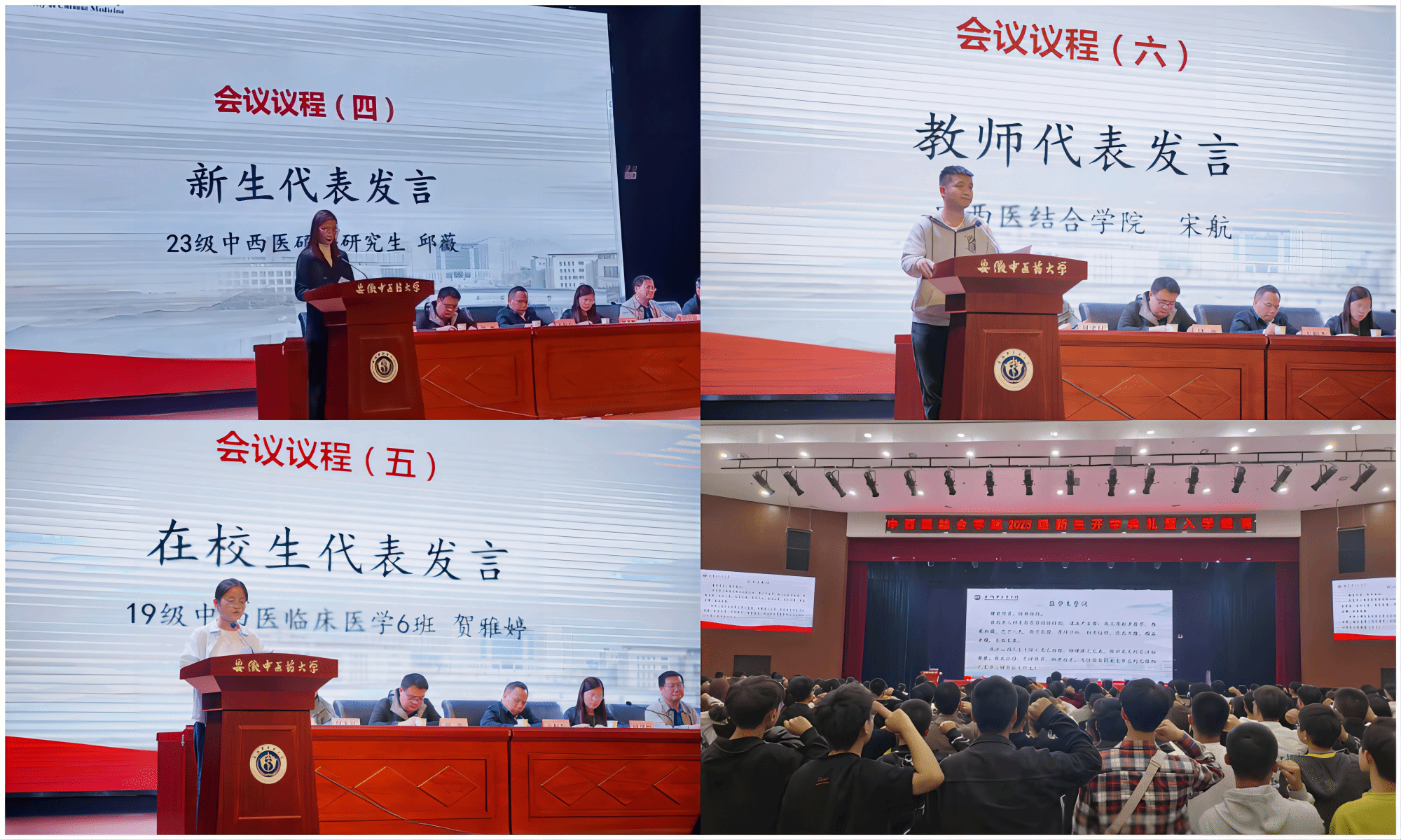 宋航副教授作为教师代表发言,他鼓励同学们要立足时代、科研报国、勤奋求知、严谨治学、勇于开拓、大胆创新,不断扎实专业基础能力,探寻专业前沿,找到自身兴趣点及科研方向。公司2019级中西医临床医学6班贺雅婷、2023级中西医硕士研究生邱薇分别作为老生和新生代表发言。随后,全体新生在贺雅婷同学的带领下,进行《医员工誓言》宣誓,庄严的誓词充分表达了青年学子为中医药事业献身的坚定信念,彰显了TapTap点点新生一代踔厉奋发、奋楫笃行的决心。