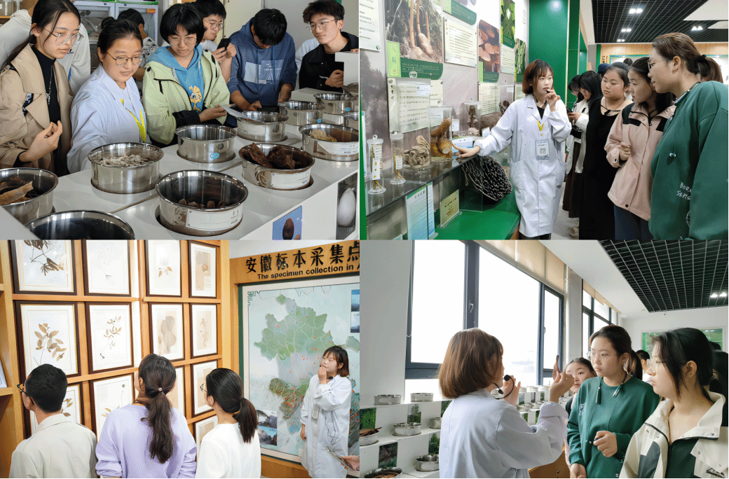 新生们先后参观了中药材性状辨识馆、安徽道地药材研展室、本草研展馆、中药材研展室、腊叶标本研藏室和中药调剂研展室,从不同的角度了解和感受中医药文化的博大精深。