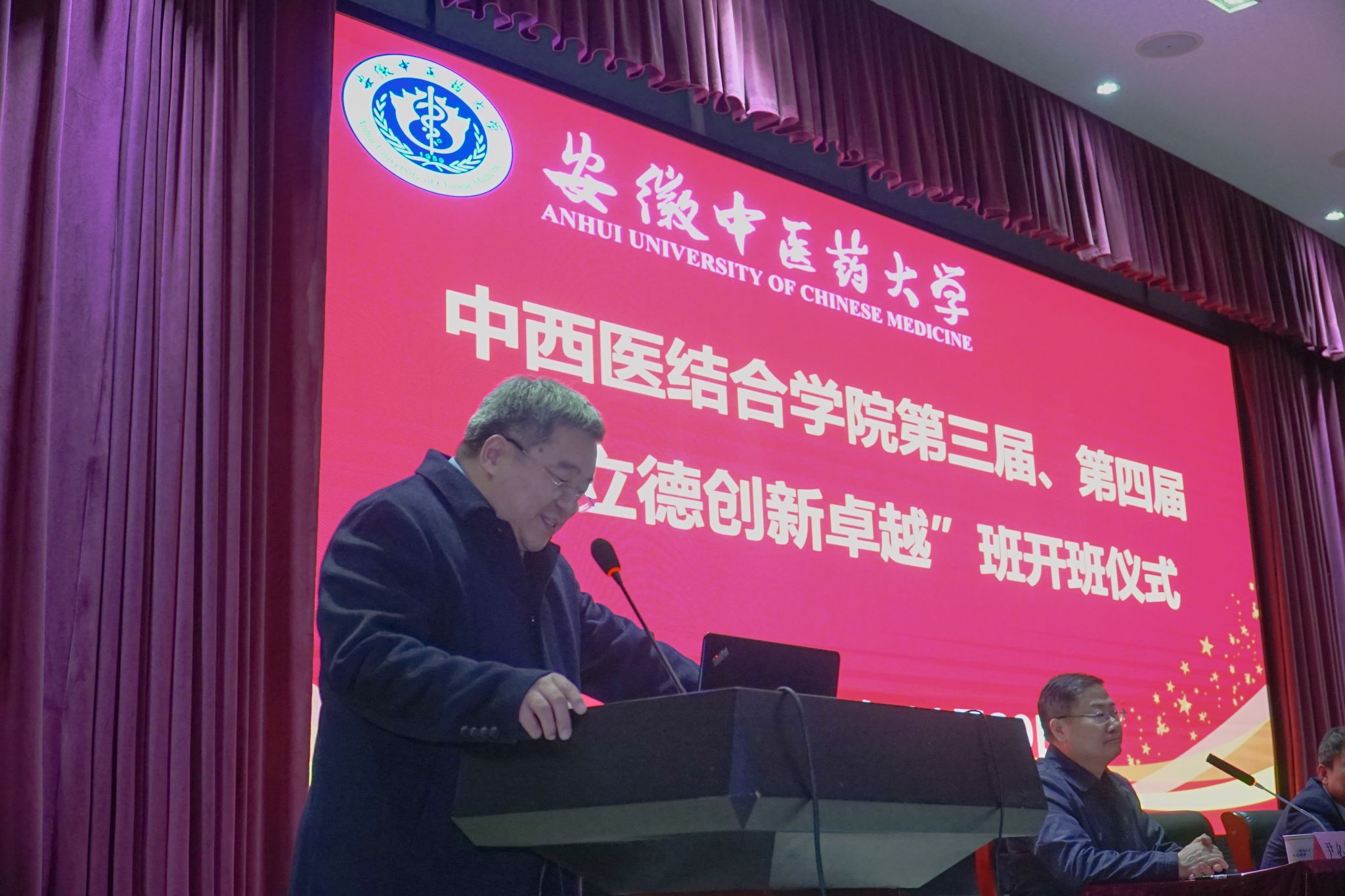 许钒代表公司在开班仪式致辞,他向入选“创新班”的同学表示热烈的祝贺,向为“创新班”培养工作付出辛勤劳动的全体导师和工作人员表示衷心的感谢。举办创新班,是响应国家号召,也是公司进一步推进一流专业建设、“新医科”建设和落实卓越医师教育培养计划2.0的重要举措,这必将开启公司人才培养的新篇章,推动公司事业高质量发展,为公司“振兴中医药,建设双一流”作出更大贡献。他对创新班学员提出了殷切的期望:一是明体达用,融会贯通,努力做到中医和西医的融会互补。二是知行合一,担当作为,努力学好中西医理论知识和临床技能,主动把小我融于大我,时不我待,只争朝夕。三是格物致知,追求卓越,在中西医结合的道路上砥砺奋斗,努力成为一名有高尚医德、有中医思维、有西医功底、有创新能力的 “四有”中西医卓越医师。