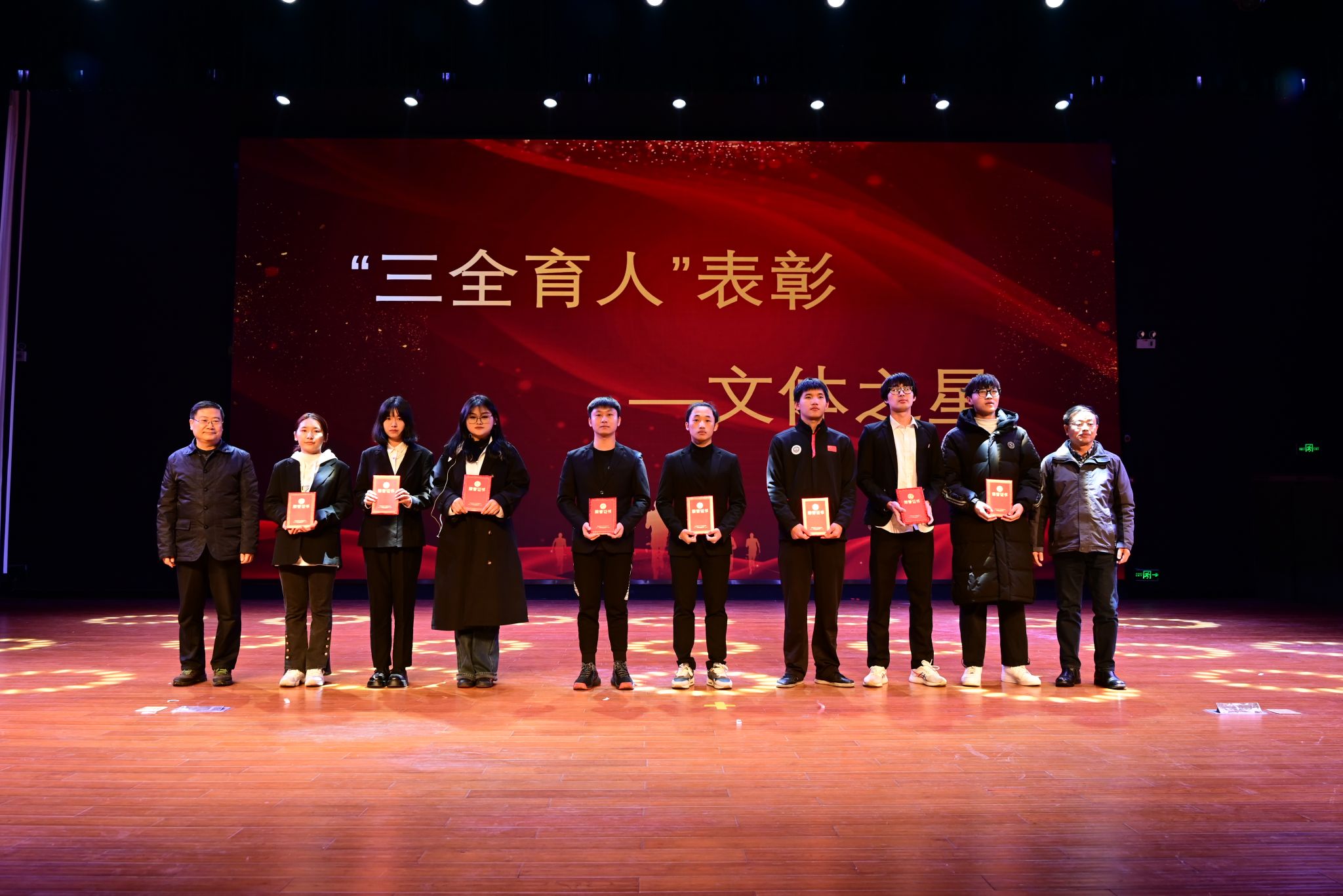 在精彩的篇章间,大会表彰了一批勤奋好学、锐意创新、德智体美劳全面发展的先进典型,并授予他们公司科创之星、文体之星的荣誉称号。在热烈的掌声和动人的音乐中,吴达武、冯祥、彭程、尹必武等为受表彰的同学们颁奖,肯定了他们用智慧书写青春辉煌,为身边同学树立了学习的榜样。