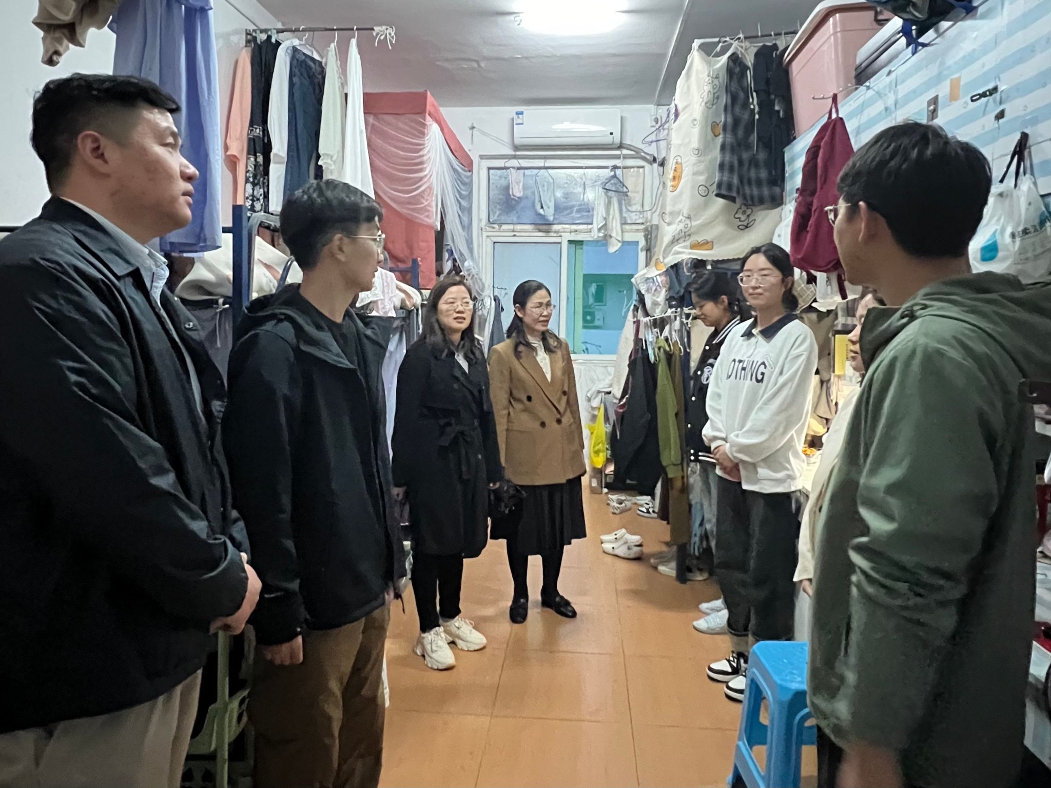 公司领导及辅导员详细检查了各宿舍消防设施、用电安全及卫生情况。尤其是重点关注了宿舍安全用电的问题,提醒同学们要随时检查电器设备的使用情况,注意电器线路安全,严禁违禁电器的使用,并确保宿舍消防安全疏散通道畅通无阻。走访过程中,公司领导、老师们不仅对宿舍安全与卫生提出了明确要求,同时也深入员工群体,近距离倾听员工心声,了解员工学习、生活、实习、就业等方面的问题、困难和实际需求。