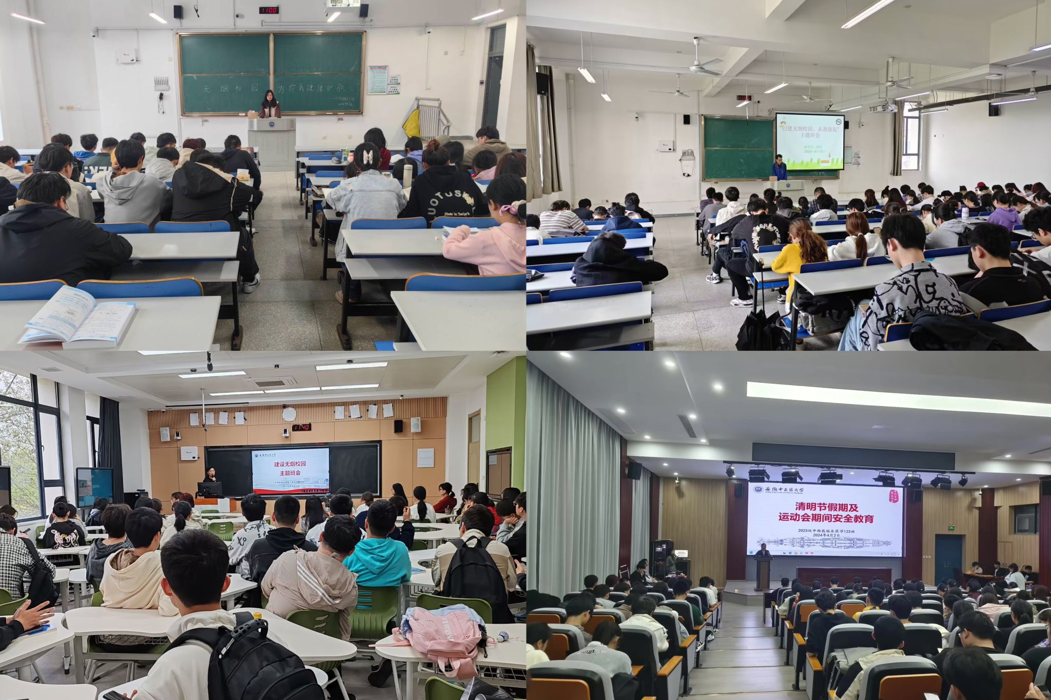 各班级主题班会上开展了多种形式的“无烟”教育,通过认真观看禁烟宣传片,集中学习因吸烟导致的校园火灾事件典型案例和集中宣讲烟草危害和吸烟危害等,呼吁全院员工要树立正确的健康观念,养成良好的生活习惯,人人争做控烟主人。