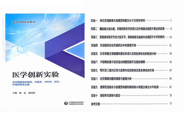 经过广泛调研和论证,该课程在原有的实验动物学、生理学、药理学、病理学、生物化学、分子生物学、微生物学、免疫学等学科实验基础上开设,最终确定了10个实验项目,并编写了《医学创新实验》教材,由中国医药科技出版社出版并使用。