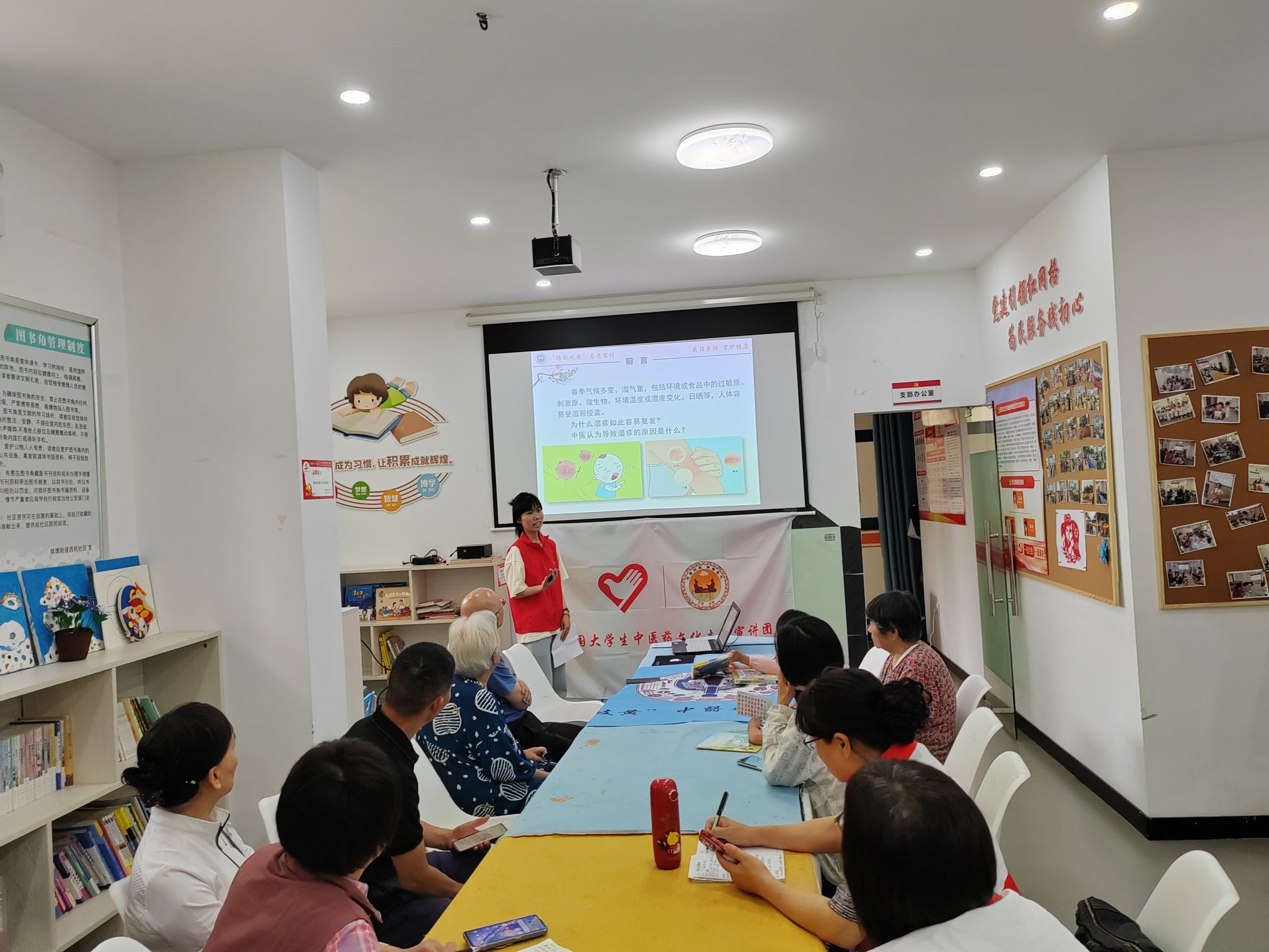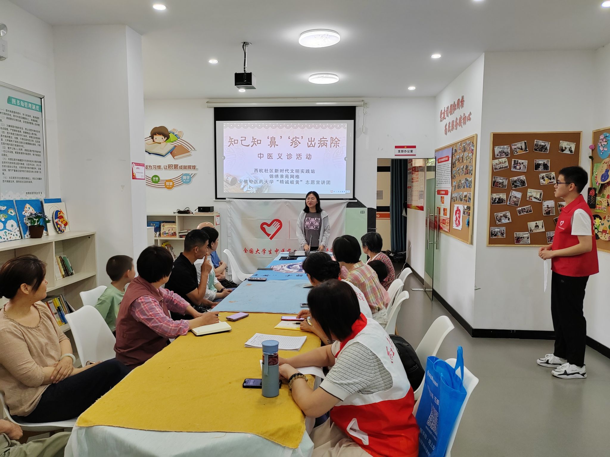 2024年4月至6月,“精诚岐黄”志愿服务队走出校园、走进社区,以丰富多彩的形式向群众展示中医药文化的魅力。团队10名成员在指导老师汪晓安的带领下,先后深入合肥市蜀山区凯旋门社区、安和苑社区、红四方社区、包河区高速滨湖时代广场社区、锦绣淮苑社区、瑶海区新店花园社区、国防科技大学电子对抗公司幼儿园等7家社区和单位,累计开展10次中医药文化宣讲及义诊活动,服务社区百姓、少年儿童550余人次。