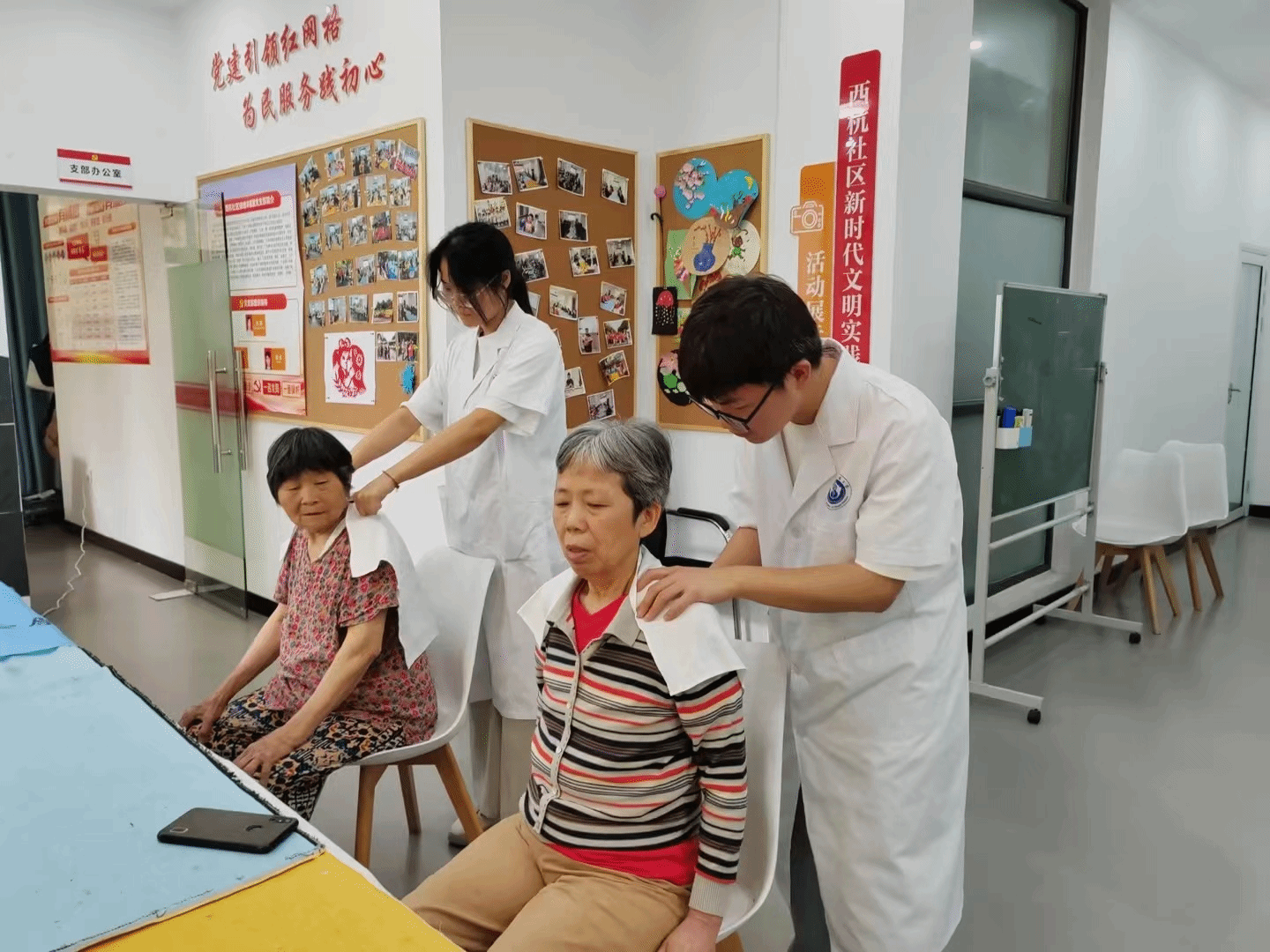 团队成员根据社区实际情况开展宣讲活动,包括中医药文化科普宣讲、血压血糖测量、五禽戏教学、推拿刮痧体验等。面向社区百姓,开展了养生方法和常见病诊治方法的介绍和宣讲,针对居民自身健康状况,提供专业中医解答,增强了居民对自身健康状况的认知、对中医药文化的了解和认同,切身体会到来自中医药的神奇魅力,进一步提升中医文化的影响力。