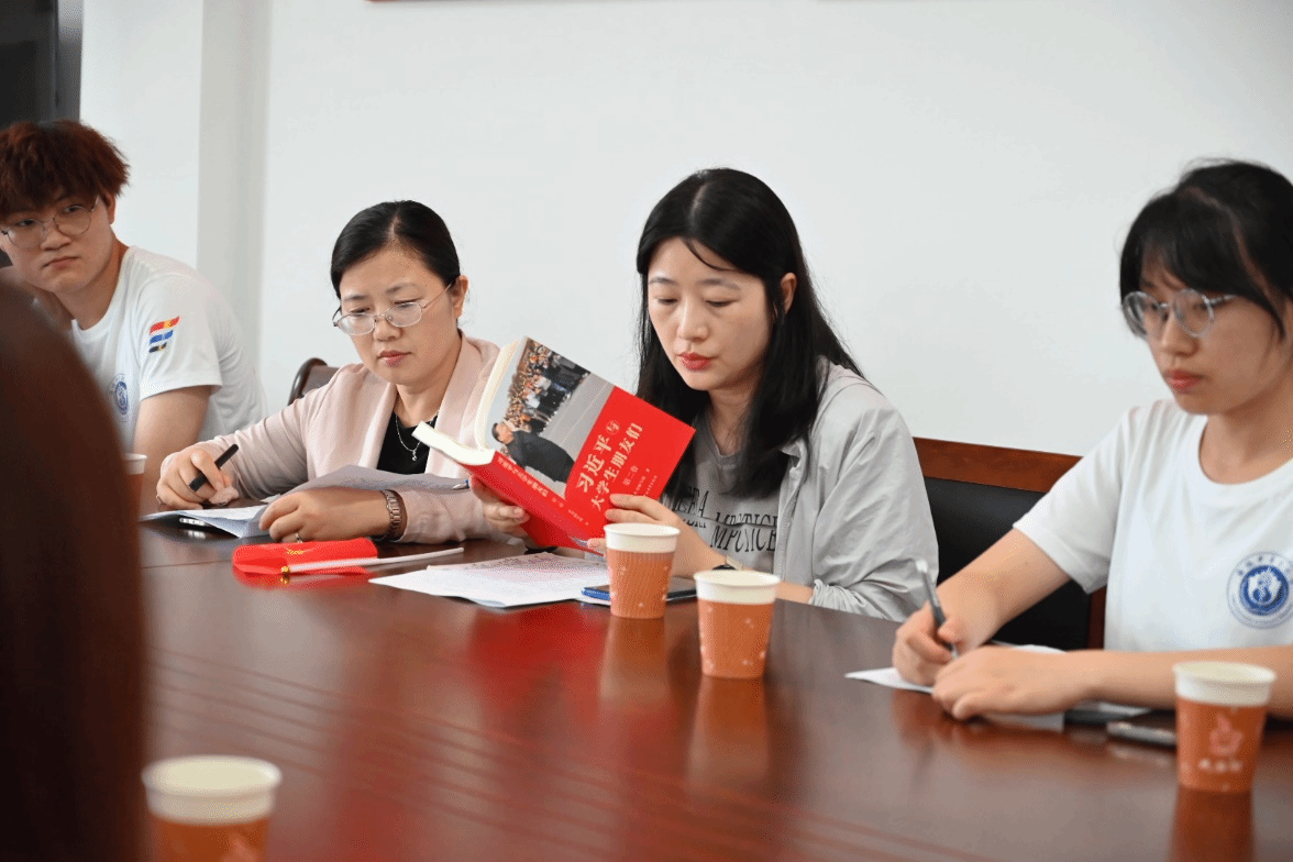 书页的翻动声,在偌大的会议室中飘荡,团队队员们正在认真研读红色书籍,感悟红色书籍里面的红色精神。本次“三下乡”社会实践活动中,志愿者们集体阅读了《习近平与老员工朋友们》的部分内容,通过书中讲述的习近平总书记与老员工朋友们的交往故事,了解了总书记对青年一代的关怀和期待。