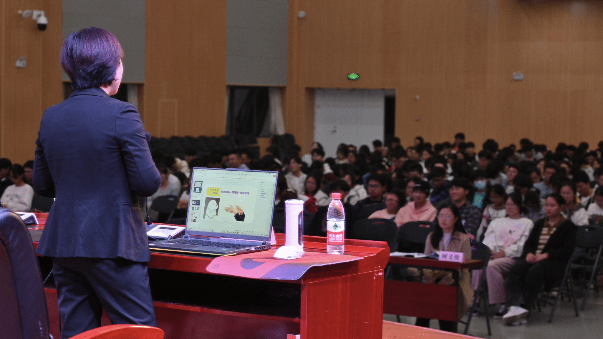 讲座最后,叶教授带领大家进行了简短的催眠体验,帮助同学们放松身心、释放压力。