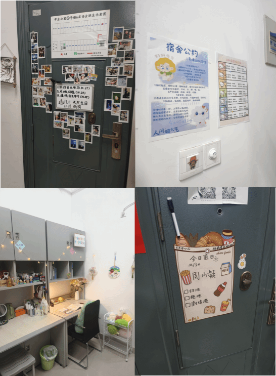 此次比赛面向硕博在内的全院全体员工,以“创文明宿舍,建美丽校园”为主题,要求参赛宿舍践行低碳环保理念,营造积极向上氛围,发挥朋辈引领作用,形成“比、学、赶、帮、超”良好风气。各寝室赛前精心布置,创意十足。在走访过程中,评审老师从各宿舍现场讲解、整洁度、文化氛围、创意布置等方面综合考量打分。在参观完所有宿舍后,评委对评分进行统计,并推荐优秀的寝室参加校级评比。