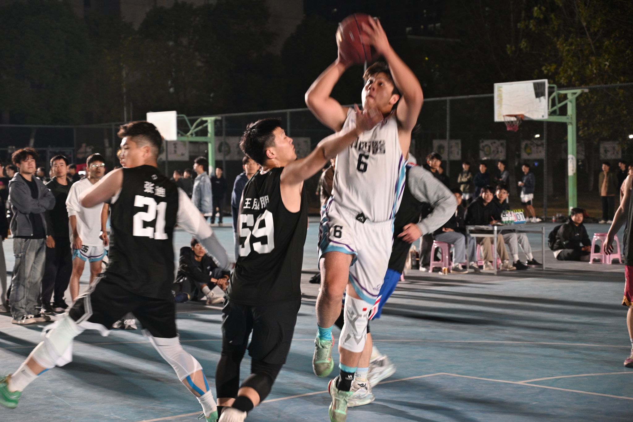 赛场上,球员们热情似火。他们运球如风,突破防线时的敏捷身姿尽显青春活力;投篮瞬间,坚毅的眼神展示出必胜的信念。各队战术执行到位,挡拆配合默契,传球行云流水。观众席上的欢呼声也响彻云霄,为运动员们呐喊助威。