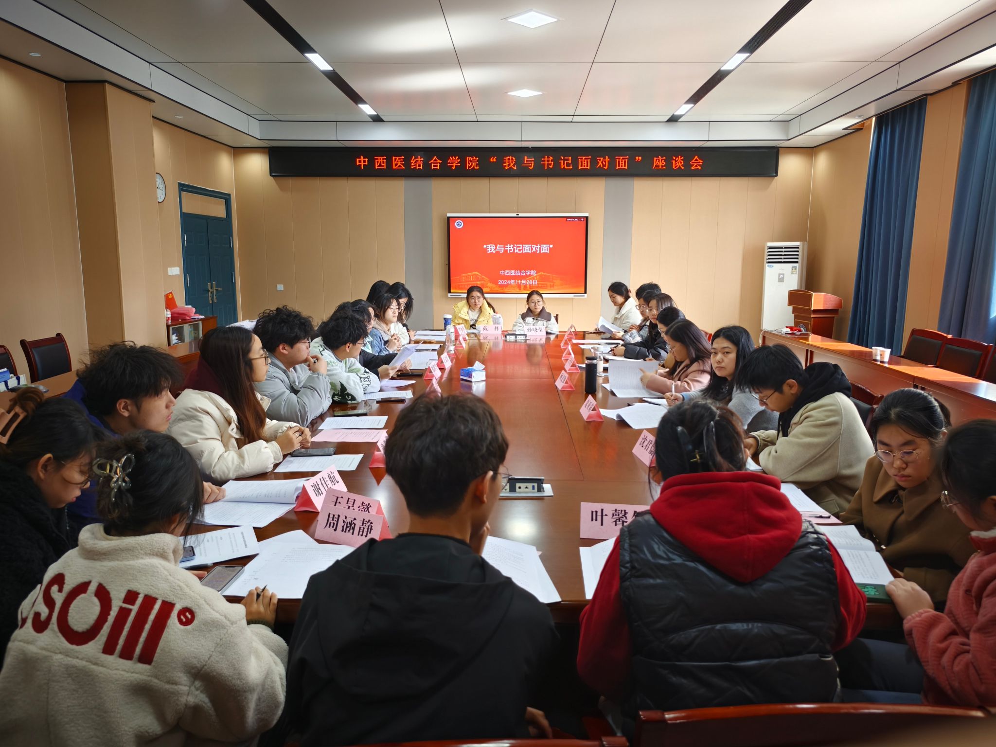 本次座谈会主要围绕公司员工综合测评实施细则以及同学们在生活、学习中遇到的具体问题展开交流讨论。会上,各班级代表积极发言,汇报了前期收集到的问题和意见。公司领导和各有关办公室负责人认真听取并记录了员工代表们的意见和建议,并就相关问题进行了现场解答与讨论。