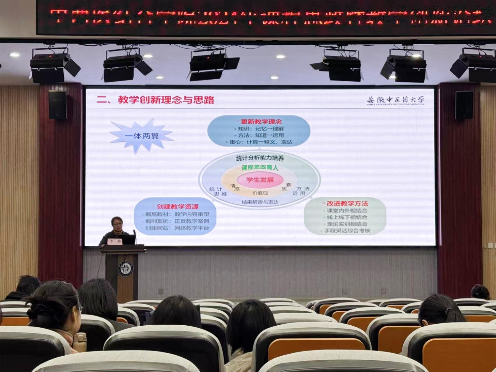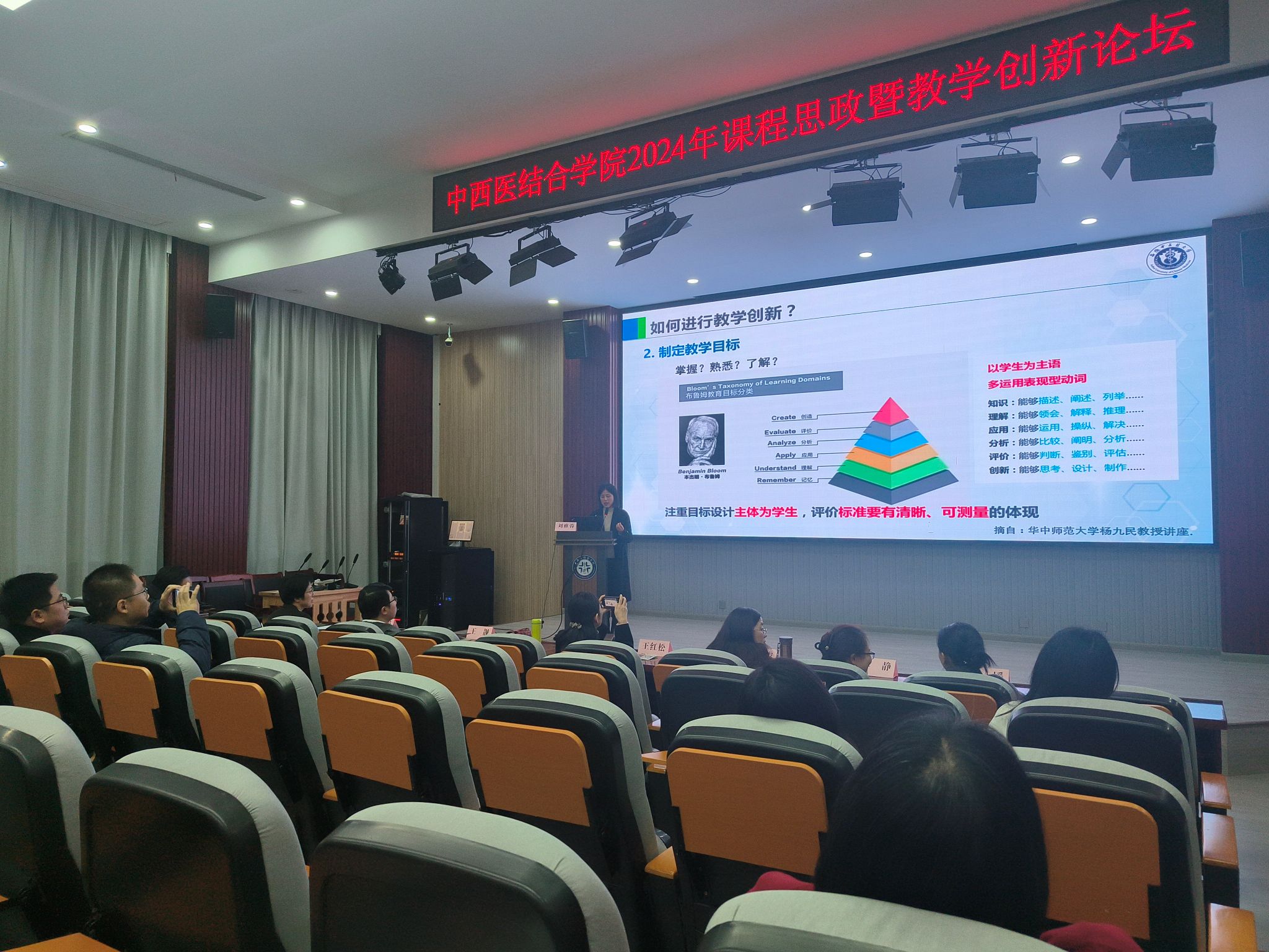 论坛上,刘雅蓉、王媛、李静三位老师先后做了主题报告。刘雅蓉老师以《更新理念·技术赋能·落实教学创新》为主题,从为什么要进行教学创新、如何进行教学创新和教学创新是不是有效果三方面,结合自身的比赛经历,深入剖析了教学创新的重要意义及实践路径,分享了“教学创新五步法”,赢得了在场教师的一致共鸣;王媛老师结合自己的参赛经验,分享了《中西医临床医学专业生理学教学探索与实践》心得;李静老师则以《教学创新大赛交流汇报——以医学统计学为例》为题,展示了《医学统计学》课程教学改革的成功案例与具体实施方法,为与会者提供了具有借鉴意义的改革思路。