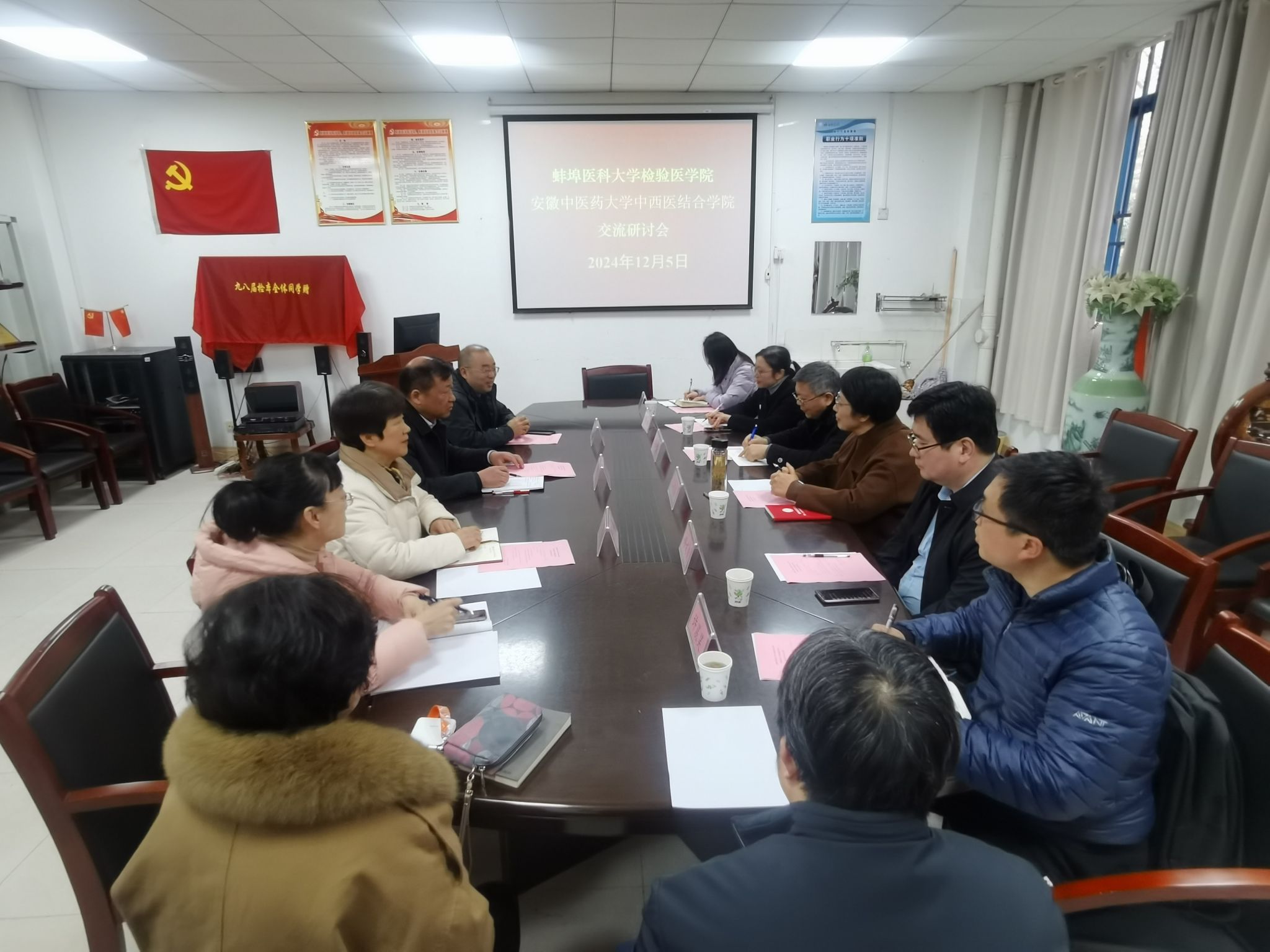 交流会上,蚌埠医科大学检验医公司党委副书记梅传忠代表公司对公司一行到访表示热烈欢迎,希望此次调研对双方各自发展和未来规划都起到促进作用。副经理武文娟详细介绍了蚌埠医科大学医学检验专业发展历程、组织结构、团队队伍等相关情况。与会人员会上还就医学检验技术专业的教学改革和人才培养进行了深入交流,表示双方将在学科专业建设方面进一步加强合作。