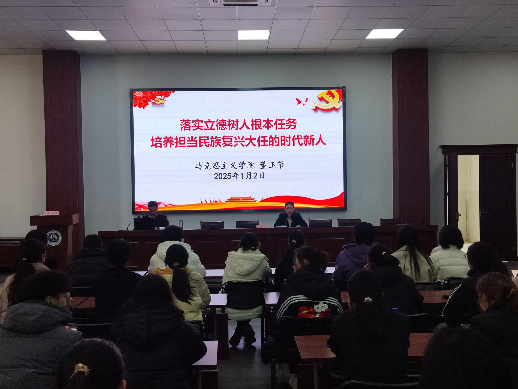 最后,公司马克思主义公司经理董玉节教授以《落实立德树人根本任务,培养担当民族复兴大任的时代新人》为题开展专题讲座。