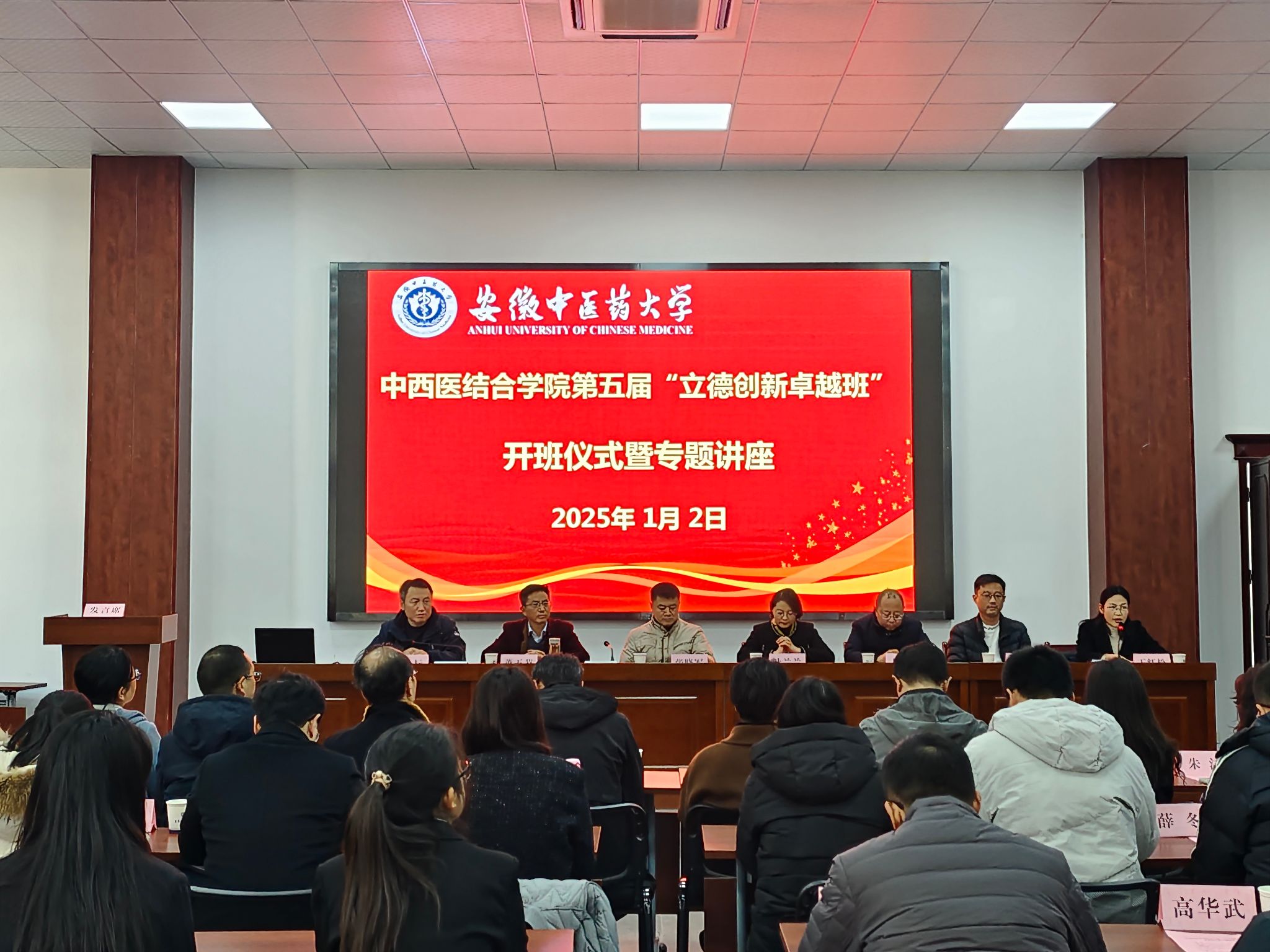 公司经理蔡标代表公司党政领导班子致开班辞。蔡标指出,“立德创新卓越”班是响应国家号召,进一步推进国家一流专业点建设、“新医科”建设和落实卓越医师教育培养计划2.0的重要举措。公司将以“立德创新卓越”班人才培养改革为抓手,始终坚持“立德树人”根本任务,落实“五育”并举,促进员工全面成长成才,推动公司各项事业高质量发展,为公司“振兴中医药,建设‘双一流’”做出更大贡献。