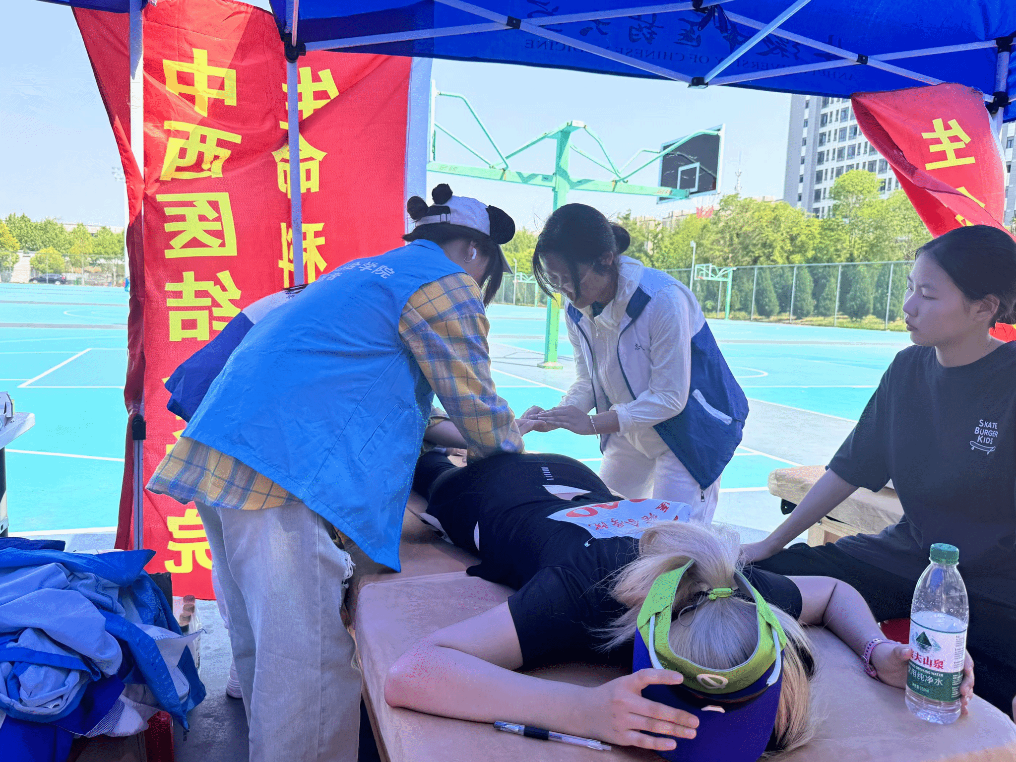 赛场内外,不止有运动员们在努力奋斗。员工会工作人员全程值守,确保各项工作有条不紊推进;志愿者们穿梭于赛场各个角落,为运动员们保驾护航;看台上的拉拉队员们手持彩旗、敲响锣鼓,让“中西医,加油!”的口号成为赛场上最激昂的旋律。