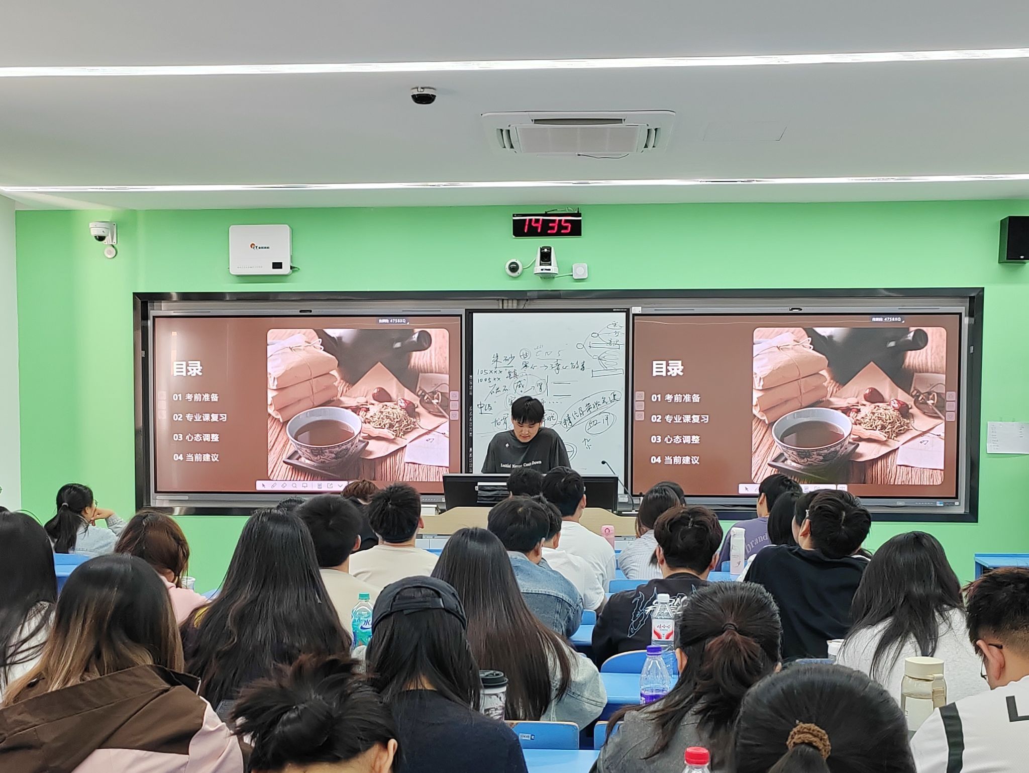 活动现场,马林老师结合自身求学经历,围绕专业学习、科研创新、职业规划等话题展开深入探讨,并耐心解答同学们的疑问。秦高远结合自身保研经历,着重分享了自己大学阶段的学业规划,并就升公司校选择给具体建议。王旭结合自己各科目学习笔记和学习心得感悟,展示了自己采用“思维导图+表格对比”的笔记方法,他强调好的笔记不是照抄课本,而是把知识内化成自己的体系,并建议学弟学妹在学习过程中重视课堂教学,以线上资源为辅,重视基础学科学习。
