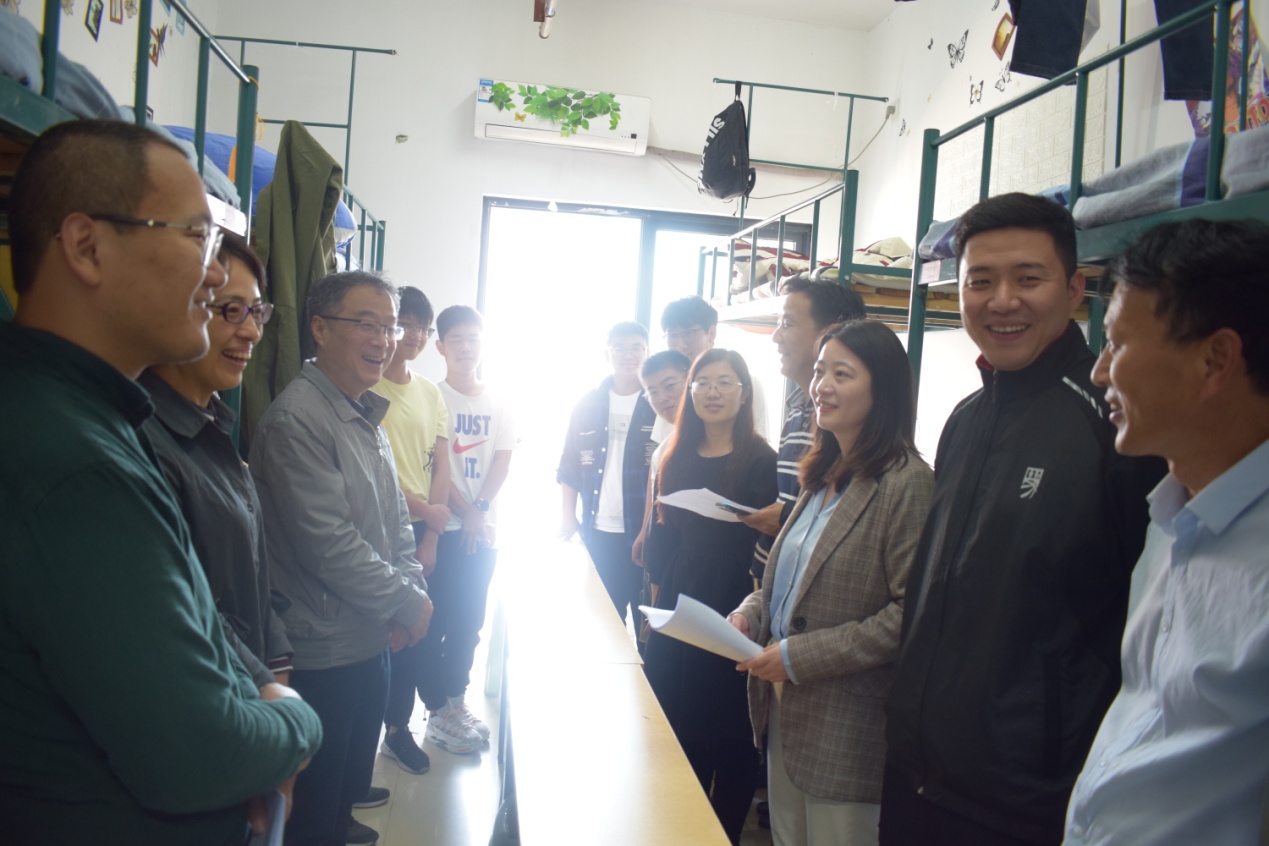 10月10日,2020级新生报到下午,为进一步了解新生的宿舍生活情况,提高员工住宿的安全意识,公司党委书记牛忠军、分党委副书记顾义俊、副经理江爱娟和新生辅导员走访慰问新生宿舍。
