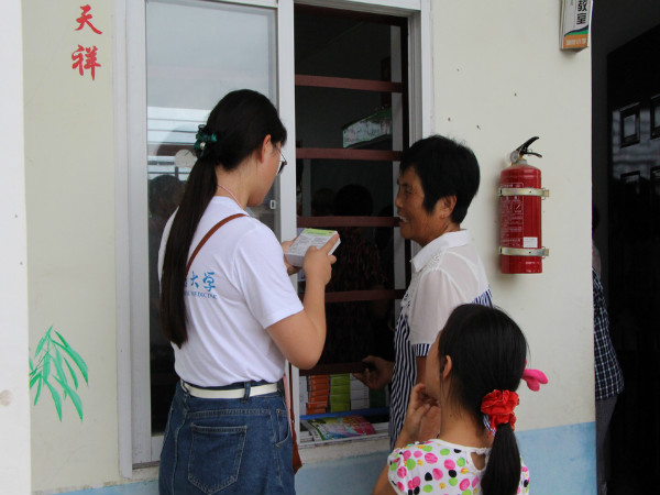 7月8日,一部分志愿者们深入乡村,挨家挨户进行健康调研,走访调查村民们对中医的了解与见解,并讲解夏季养生知识。在当地村民的配合下,宣传调研工作顺利进行。志愿者们宣传的关于养生保健的小知识也深受当地村民喜爱。