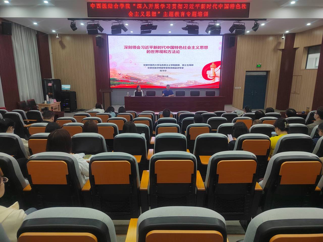 会议邀请到马克思主义公司教授、安徽省委讲师团专家库高端宣讲专家陈书华作专题报告。陈书华以“深刻领会习近平新时代中国特色社会主义思想的世界观和方法论”为题,带领与会同志深入学习习近平新时代中国特色社会主义思想,并从本次主题教育的意义、目标要求、根本任务、习近平新时代中国特色社会主义思想回答的时代课题及其主要内容、习近平新时代中国特色社会主义思想的世界观和方法论等三个方面上了一堂精彩的专题解读课。