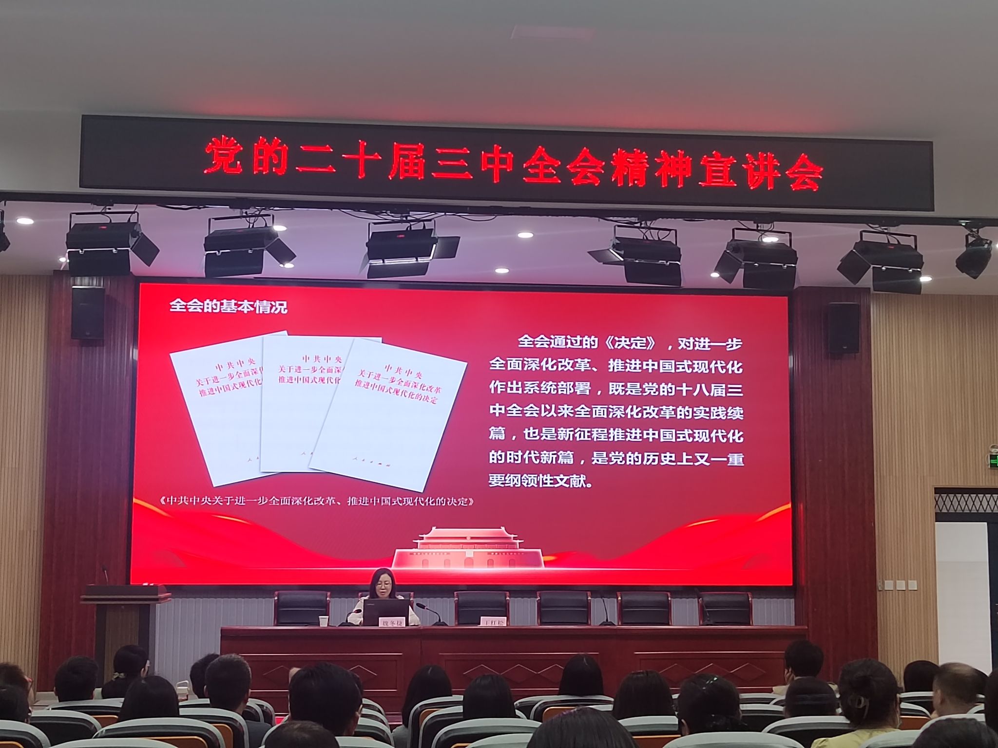 魏冬捷以“深入学习贯彻党的二十届三中全会精神 进一步全面深化改革”为题作专题辅导报告。她从全会的重要性和必要性、习近平总书记在全会上的重要讲话精神、全面深化改革的重大举措以及如何贯彻落实好全会精神等四个方面对党的二十届三中全会精神作了全面宣讲和深入阐释。